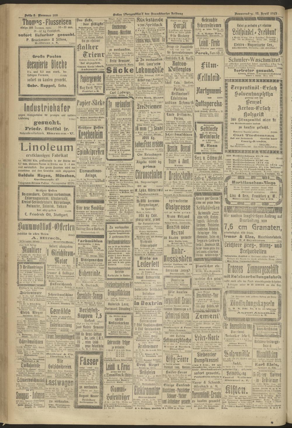12.04.1917 = Nr. 100. Erstes Morgenblatt