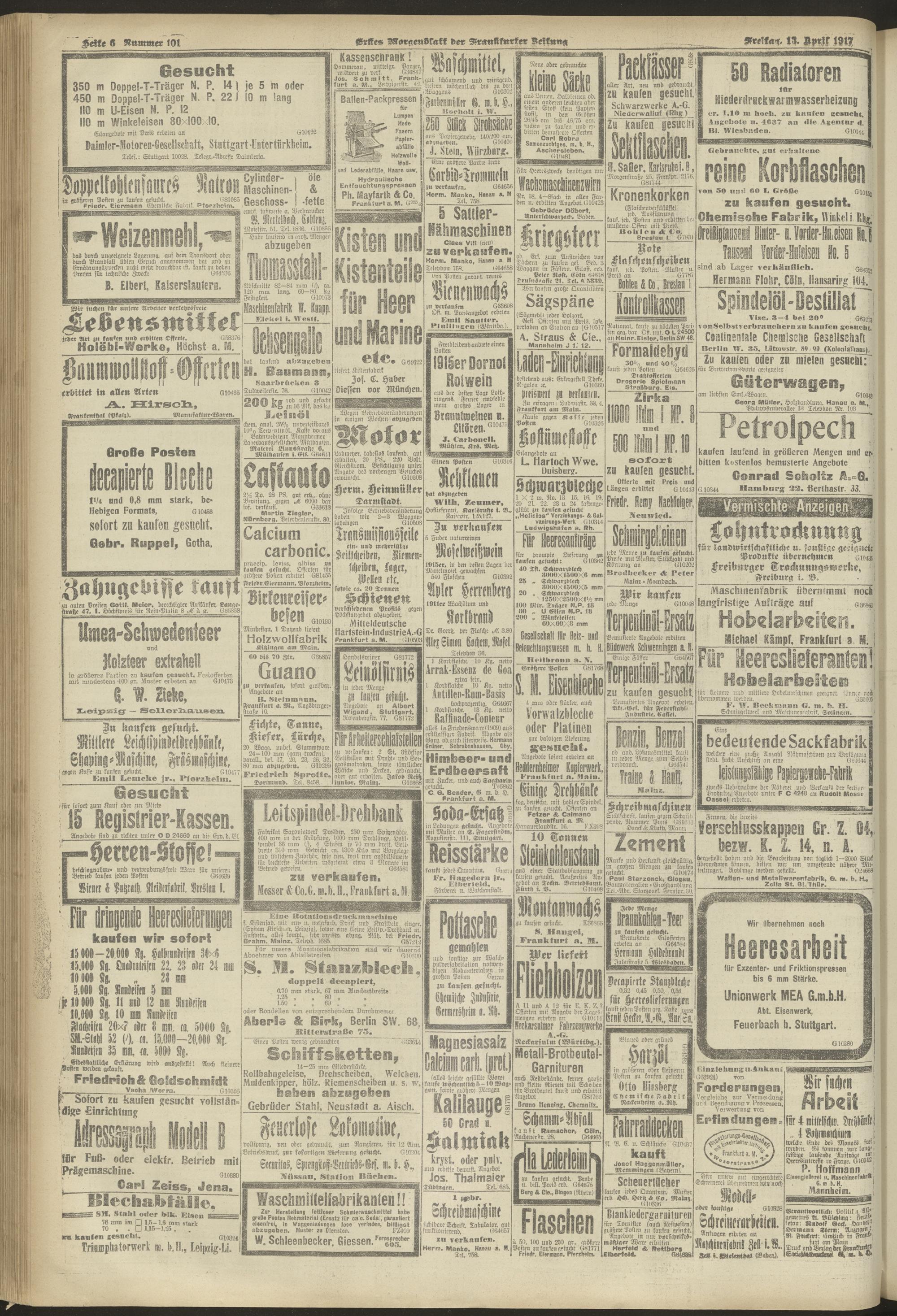 13.04.1917 = Nr. 101. Erstes Morgenblatt