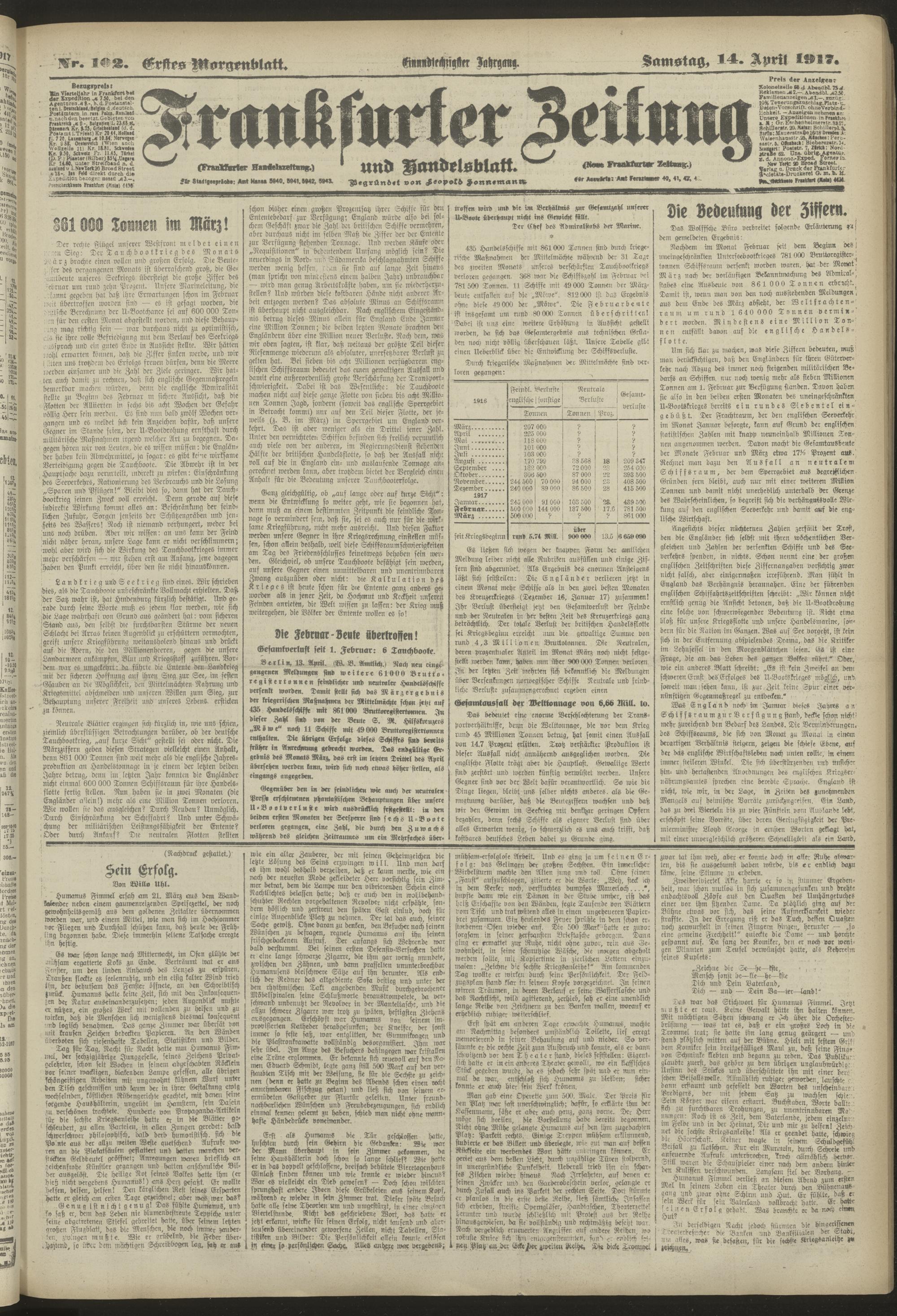 14.04.1917 = Nr. 102. Erstes Morgenblatt