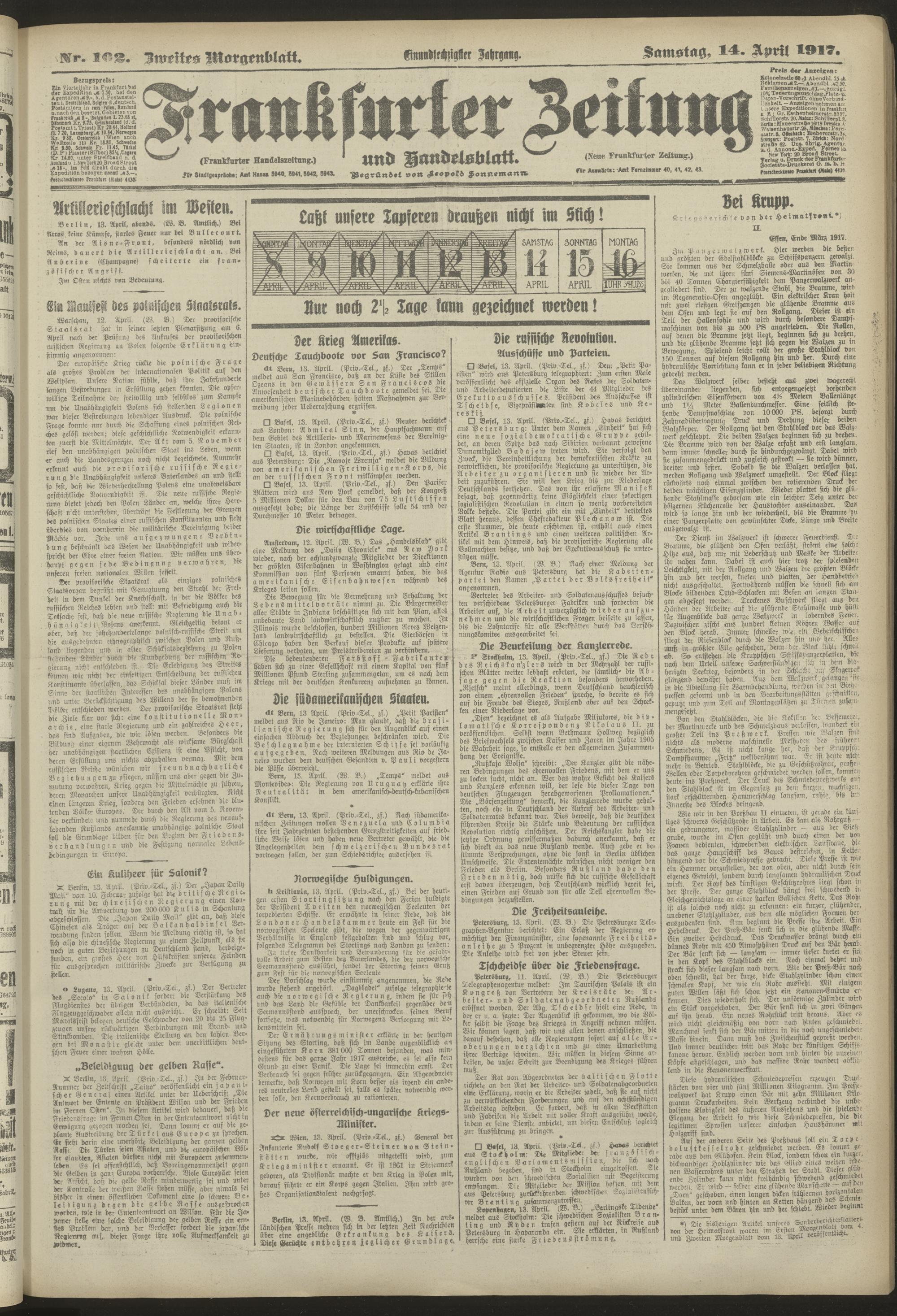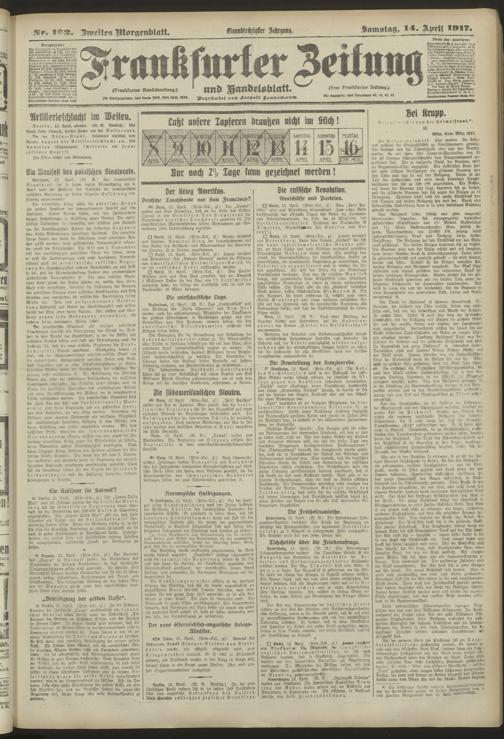 14.04.1917 = Nr. 102. Zweites Morgenblatt