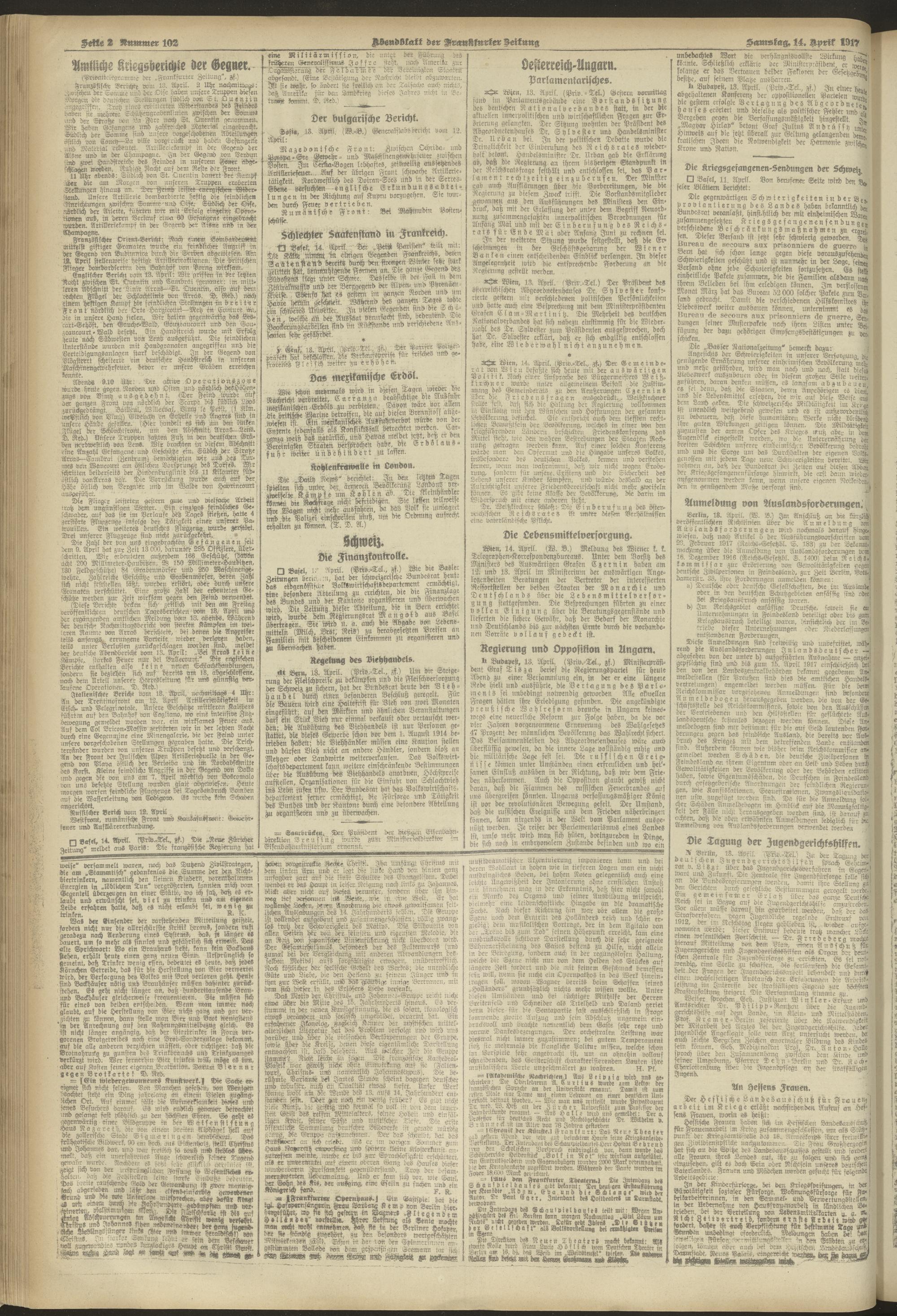14.04.1917 = Nr. 102. Abendblatt