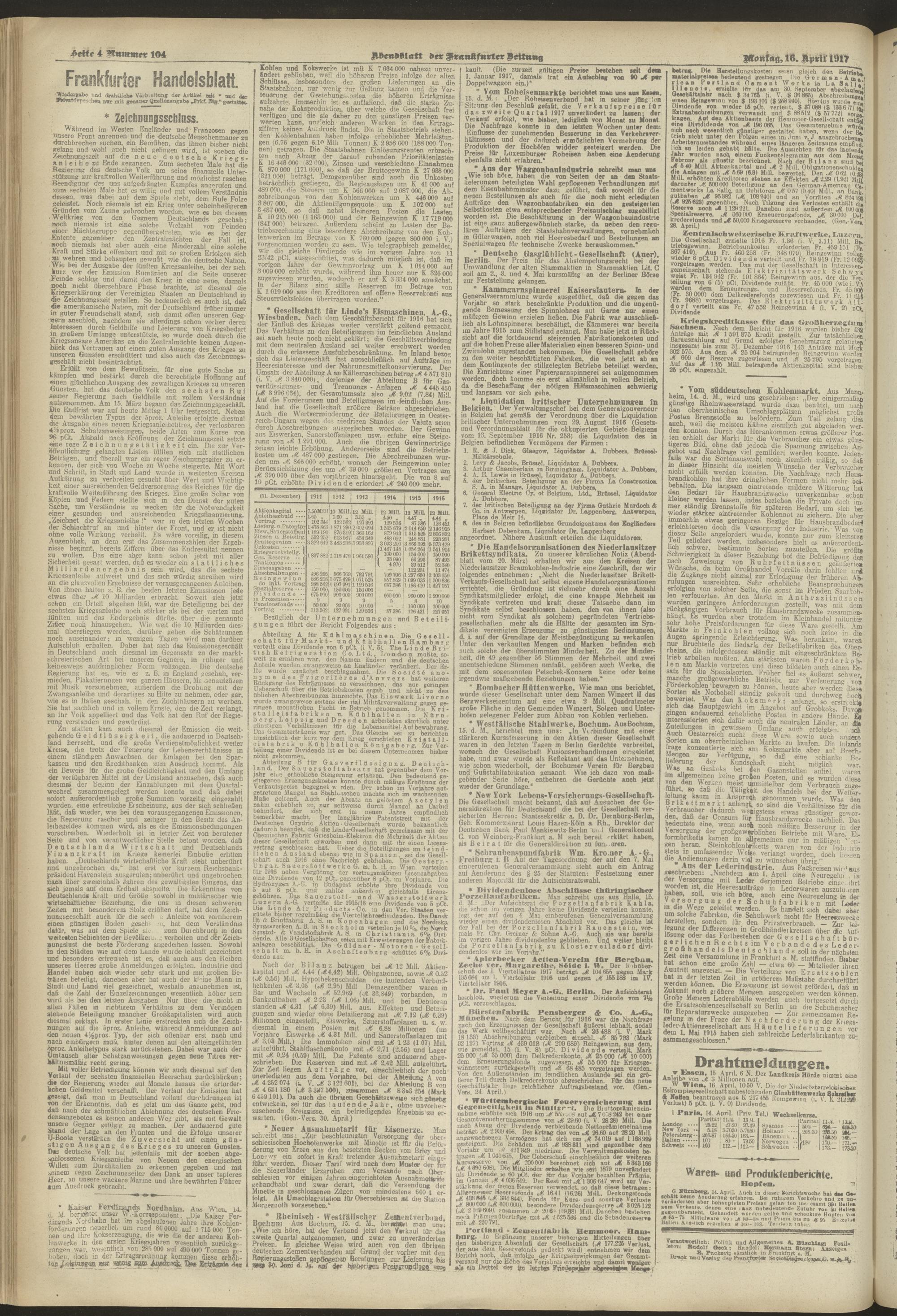 16.04.1917 = Nr. 104. Abendblatt