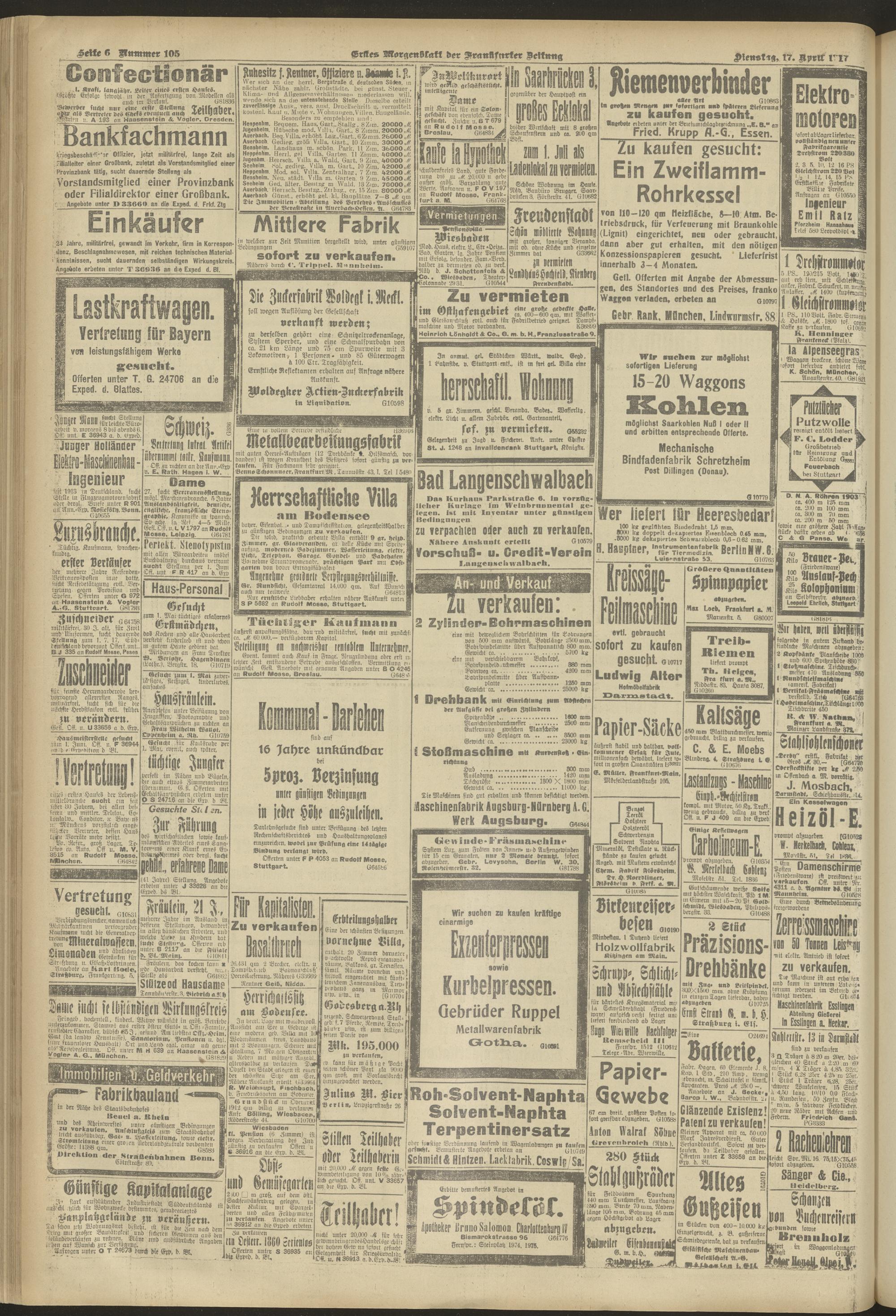 17.04.1917 = Nr. 105. Erstes Morgenblatt