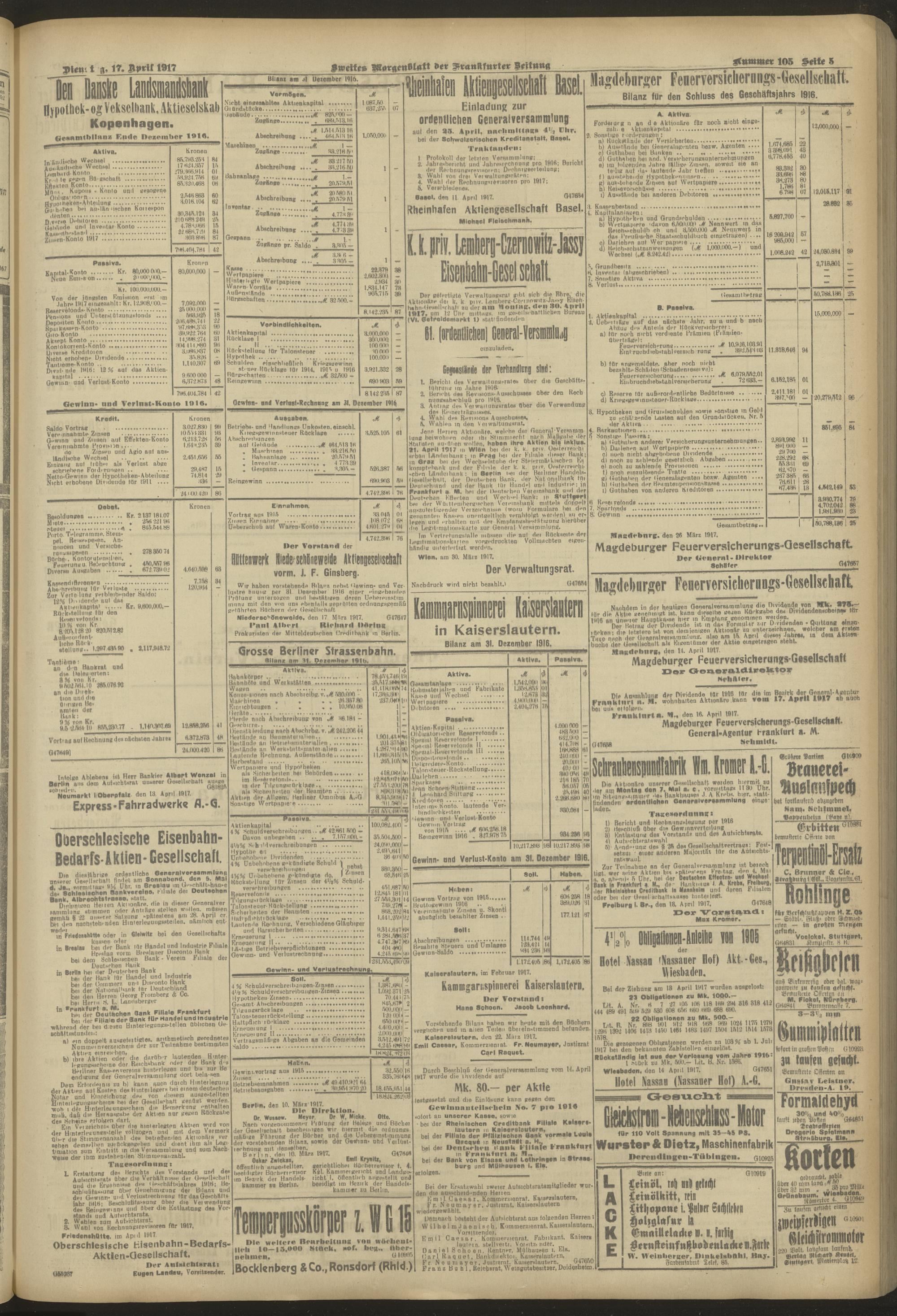 17.04.1917 = Nr. 105. Zweites Morgenblatt