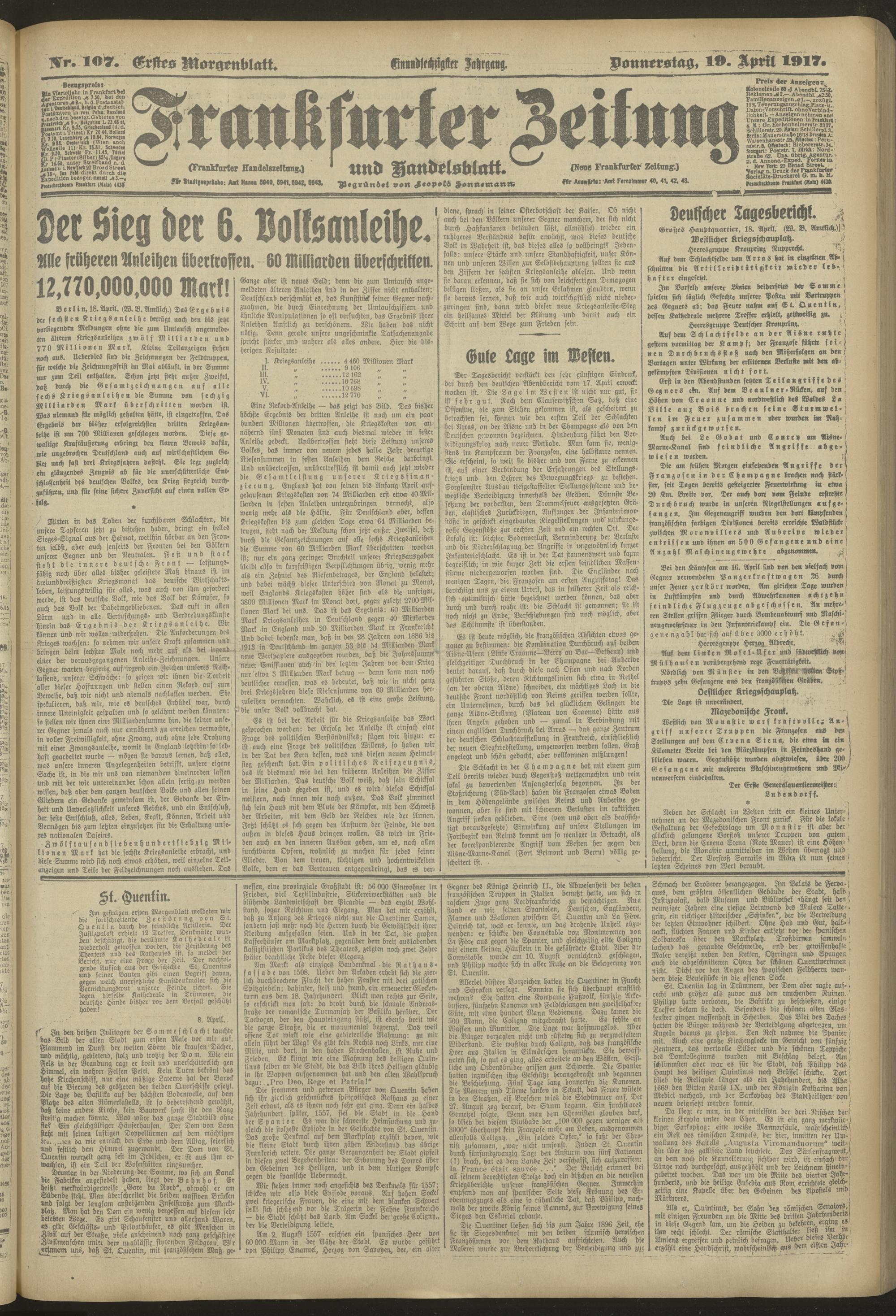 19.04.1917 = Nr. 107. Erstes Morgenblatt