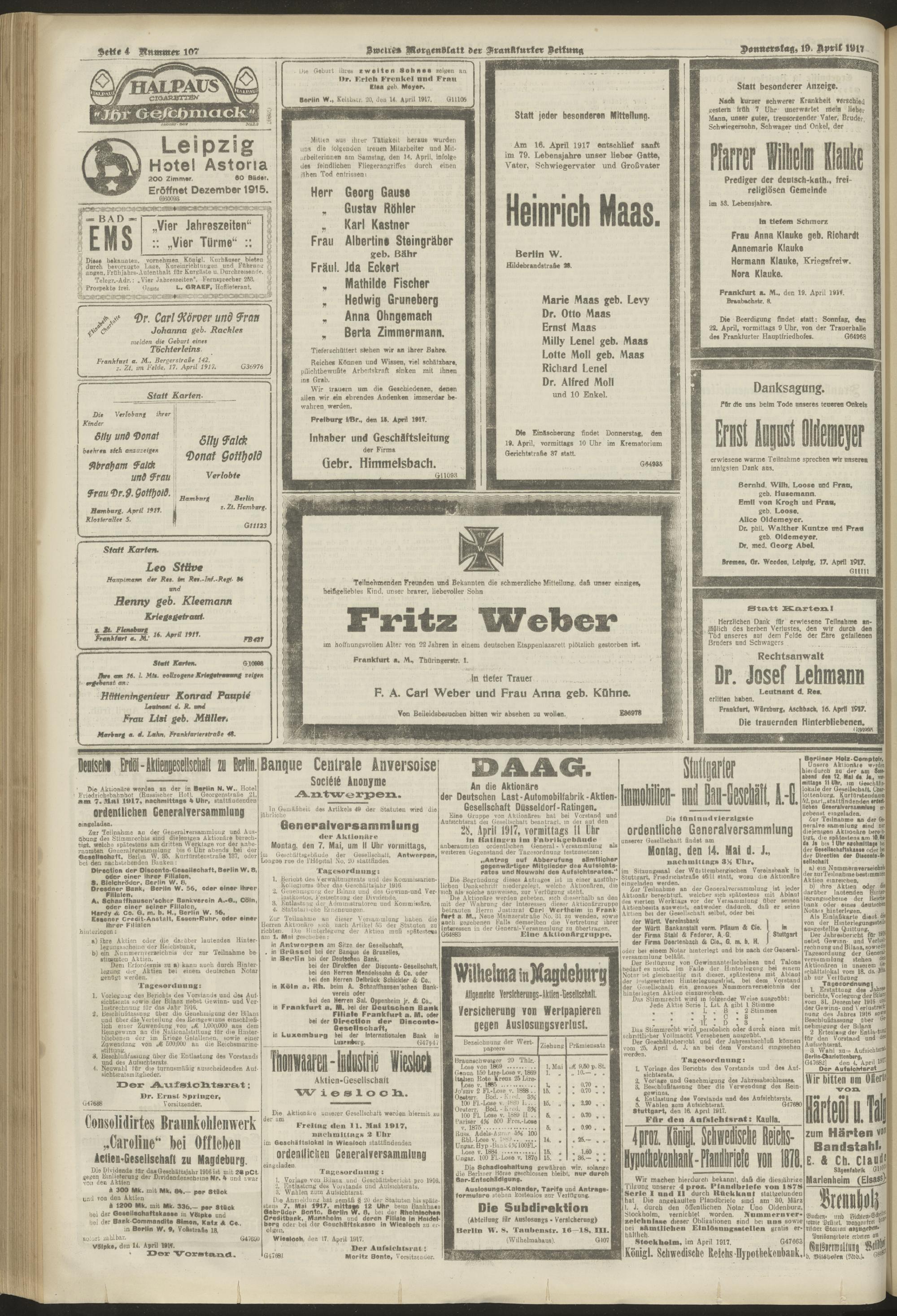 19.04.1917 = Nr. 107. Zweites Morgenblatt