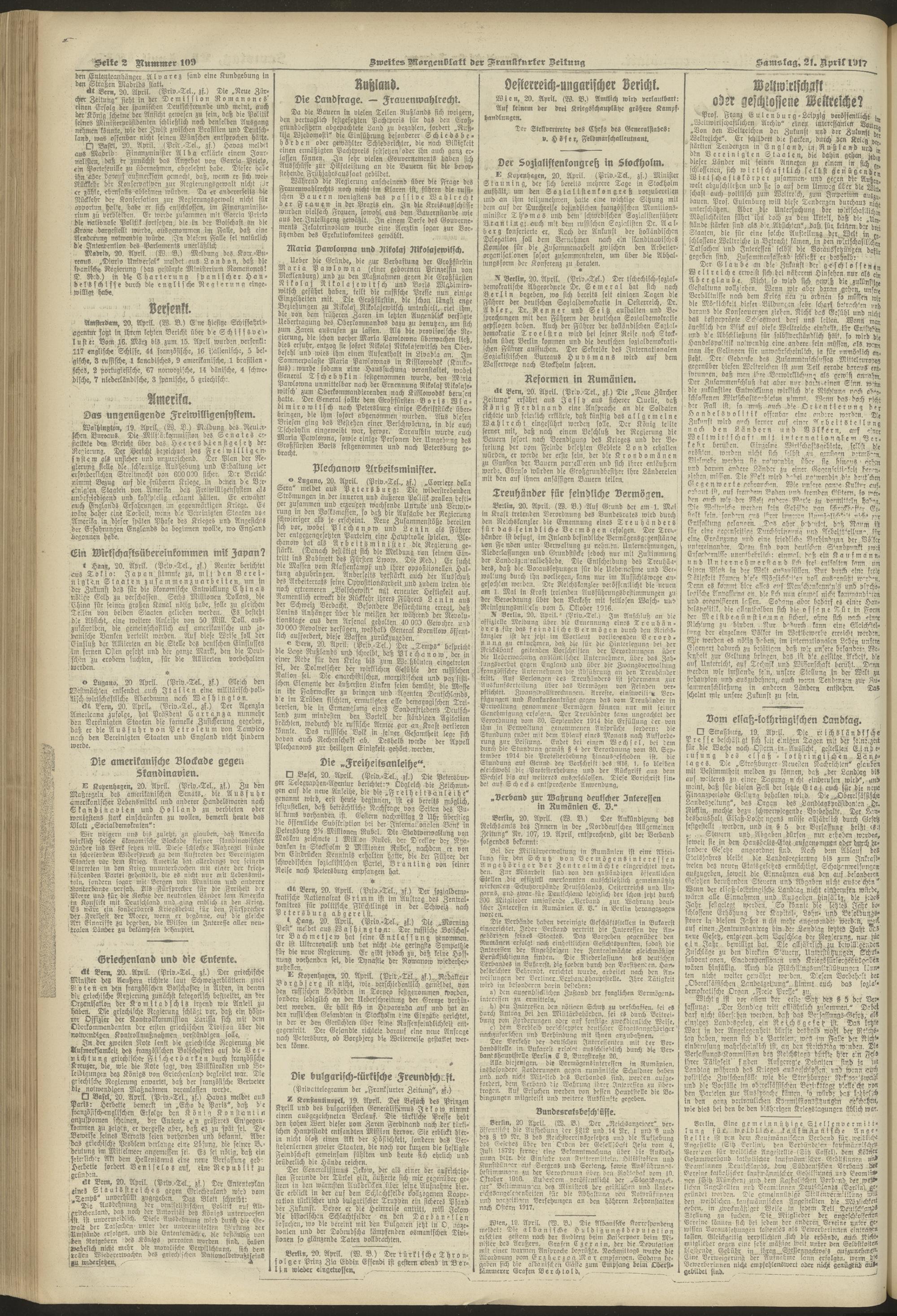 21.04.1917 = Nr. 109. Zweites Morgenblatt