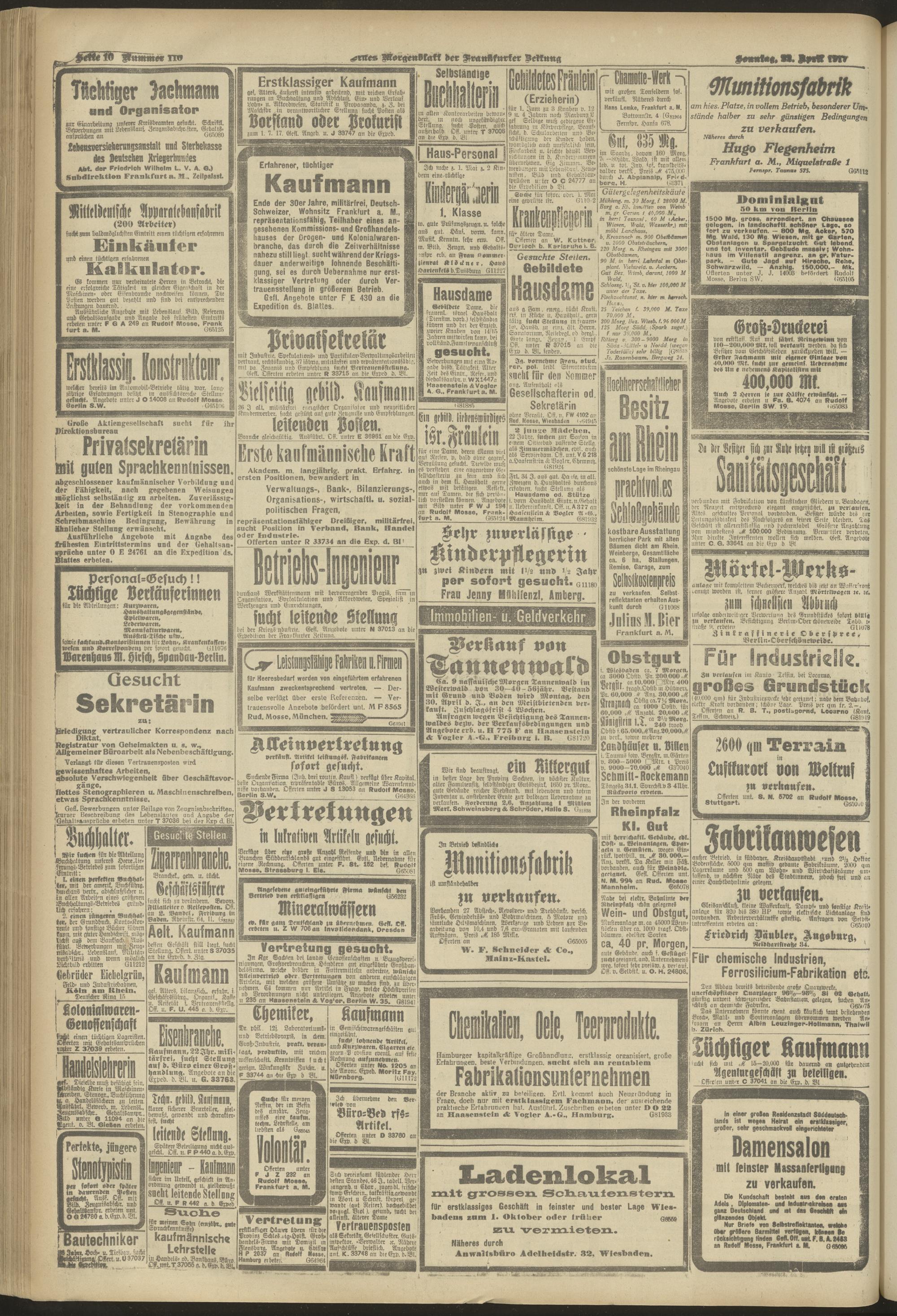 22.04.1917 = Nr. 110. Erstes Morgenblatt