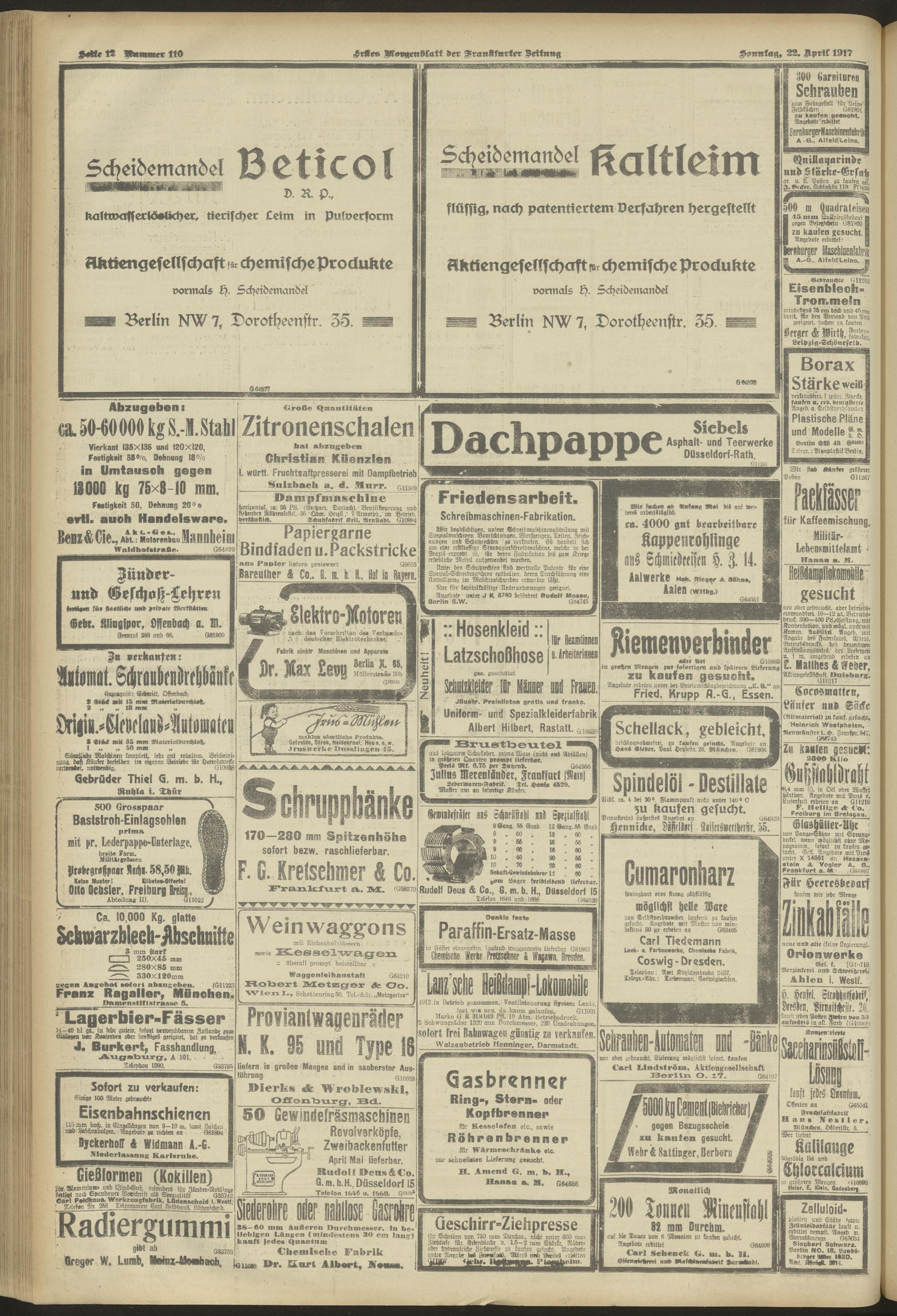 22.04.1917 = Nr. 110. Erstes Morgenblatt