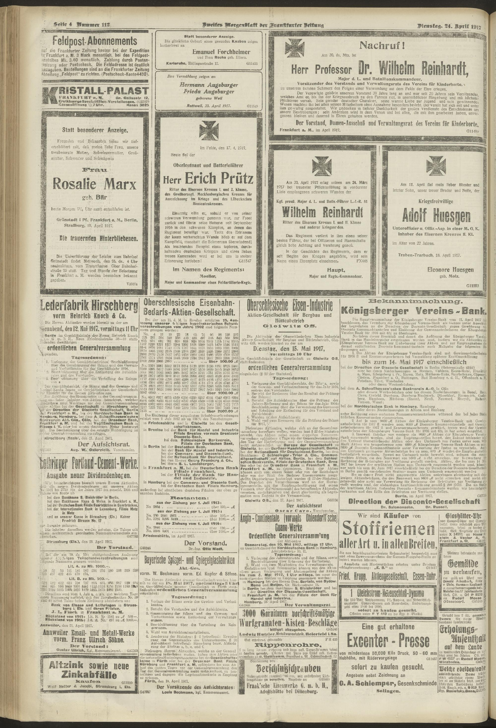 24.04.1917 = Nr. 112. Zweites Morgenblatt