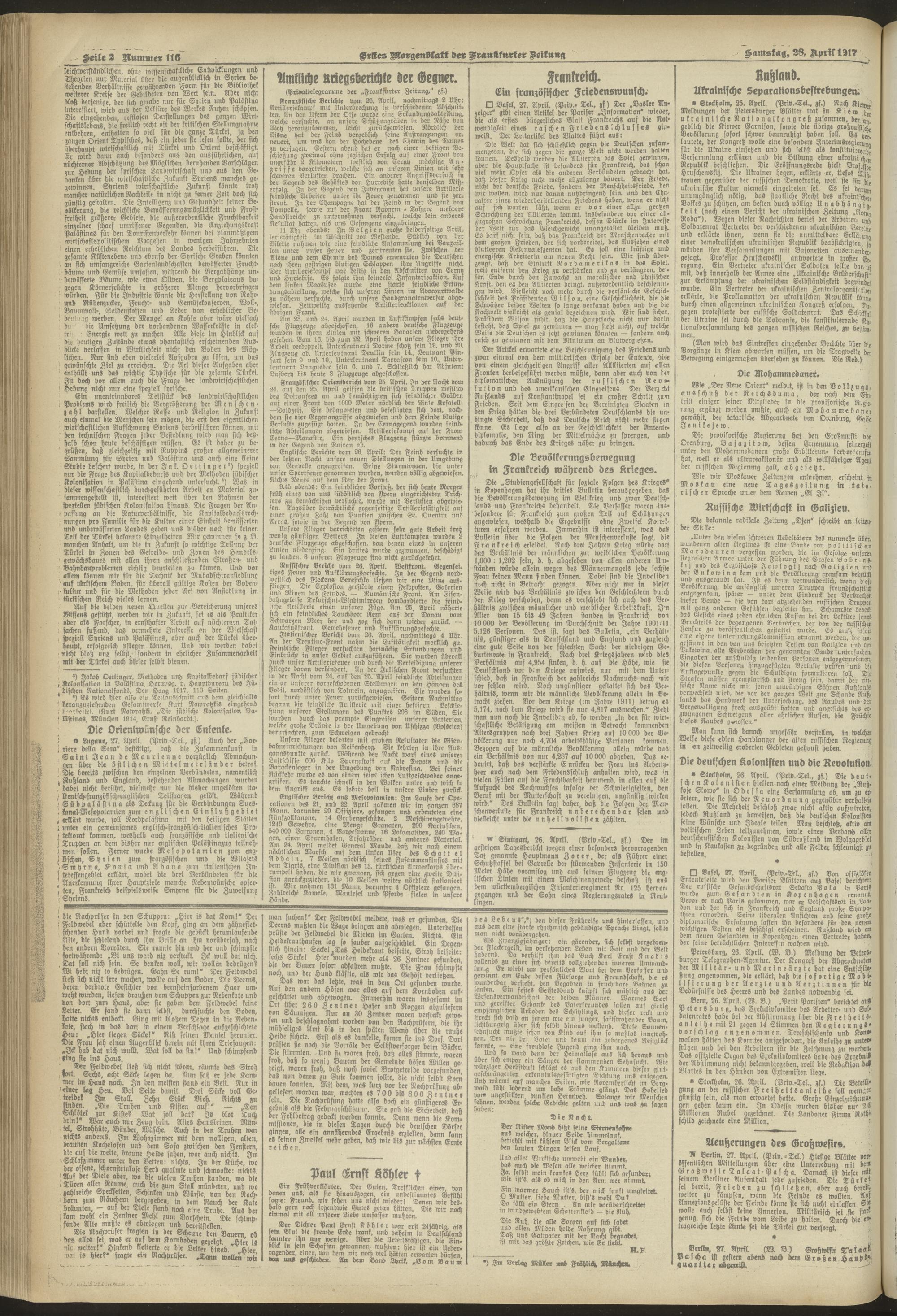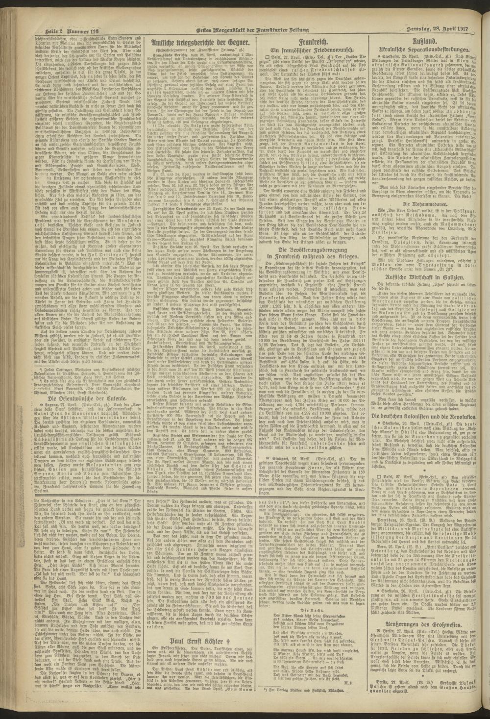 28.04.1917 = Nr. 116. Erstes Morgenblatt