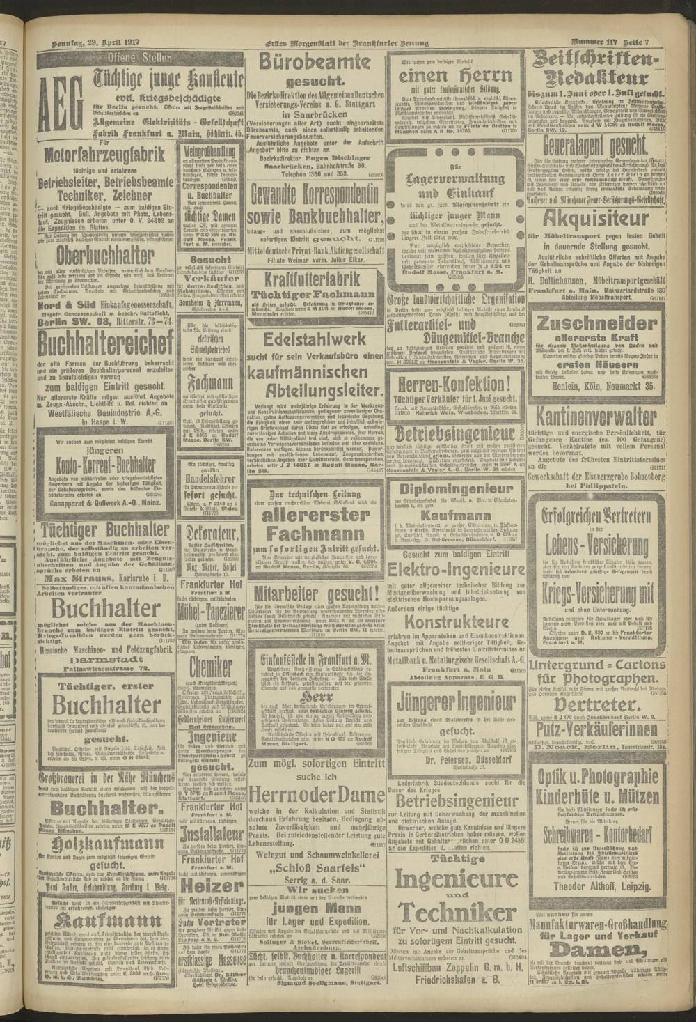 29.04.1917 = Nr. 117. Erstes Morgenblatt