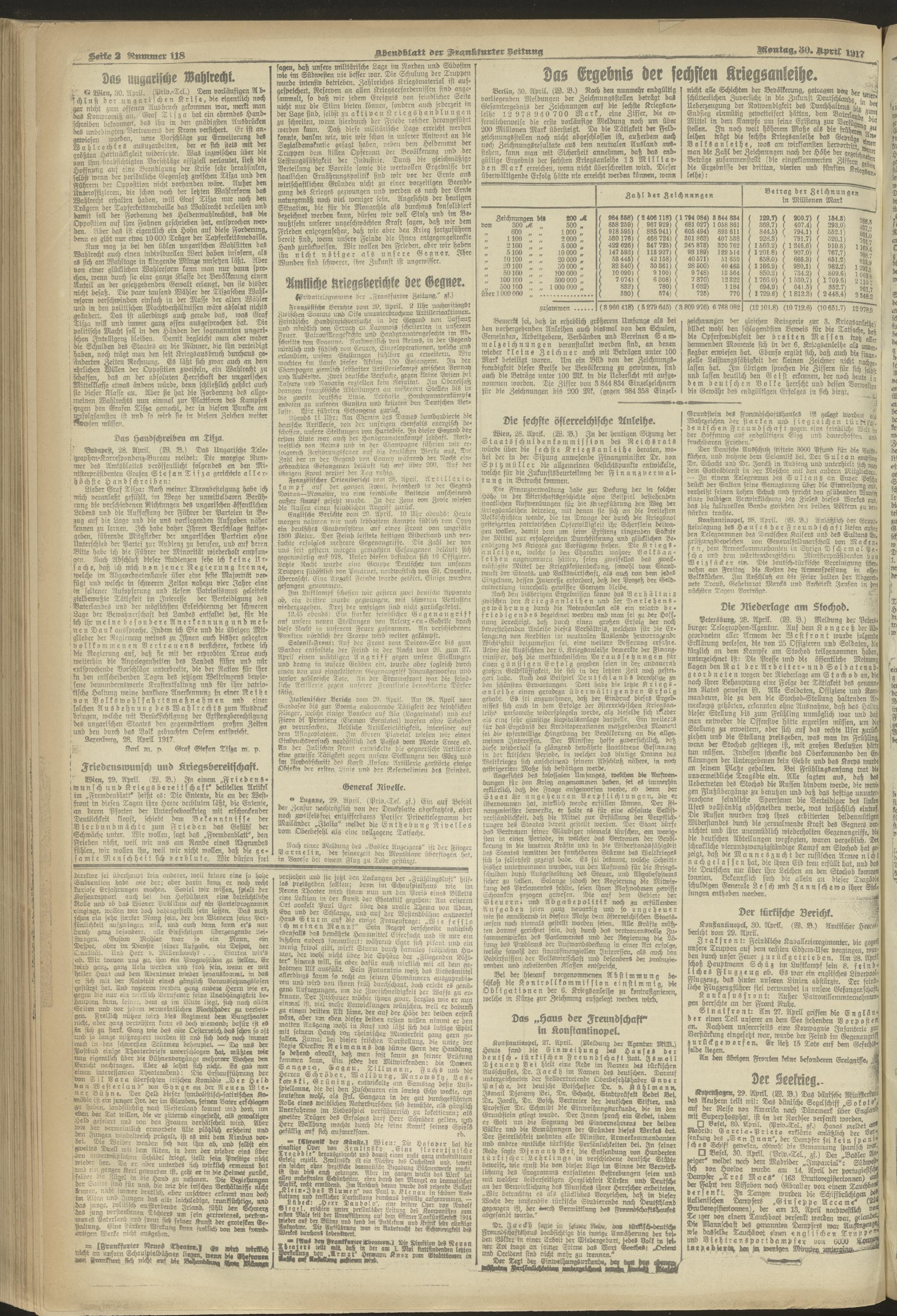 30.04.1917 = Nr. 118. Abendblatt