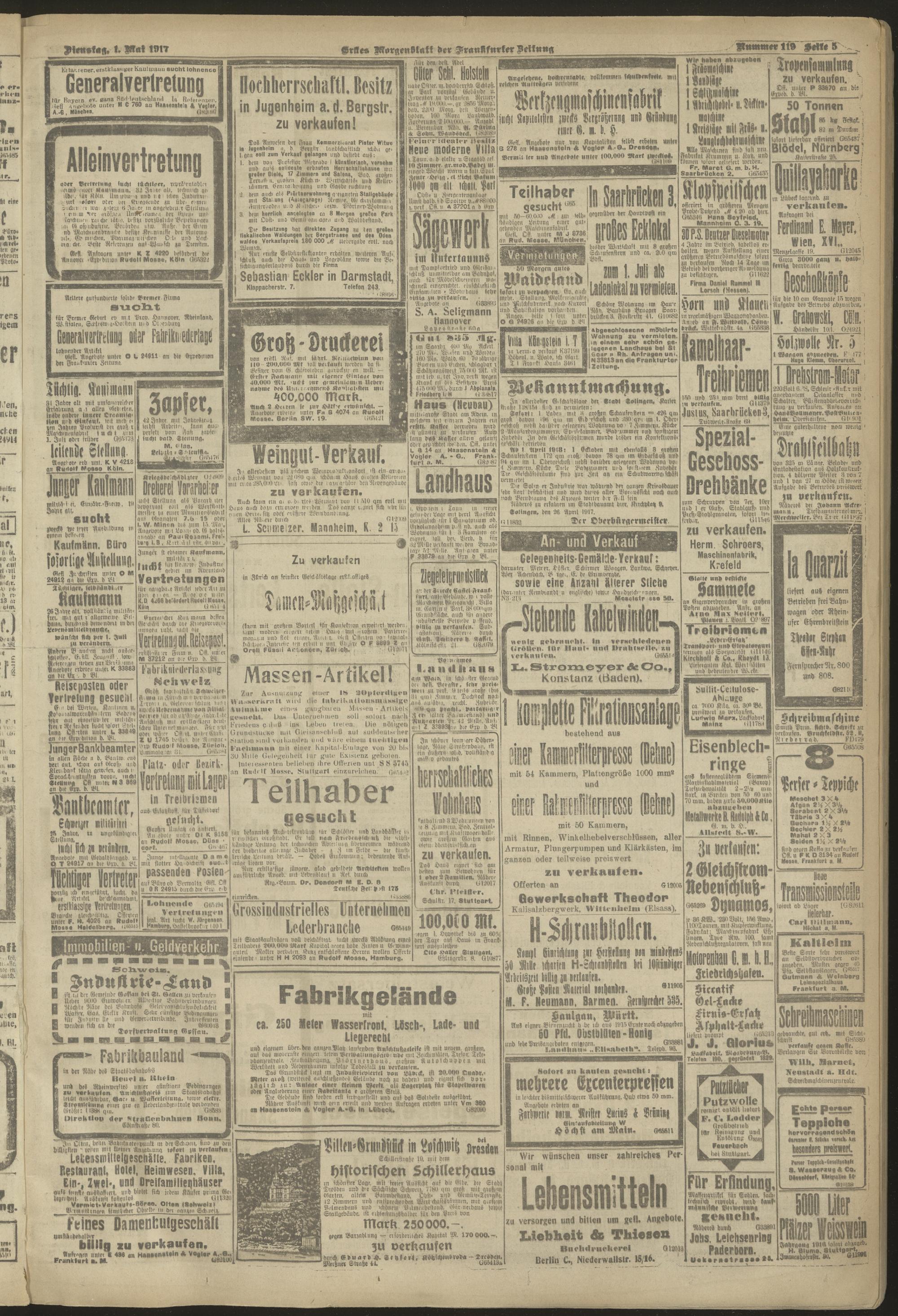 01.05.1917 = Nr. 119. Erstes Morgenblatt