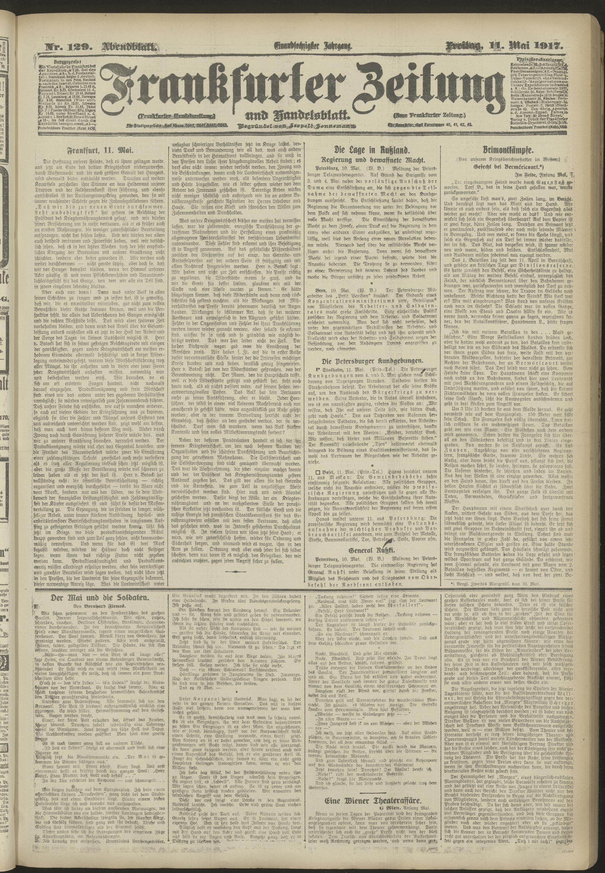 11.05.1917 = Nr. 129. Abendblatt