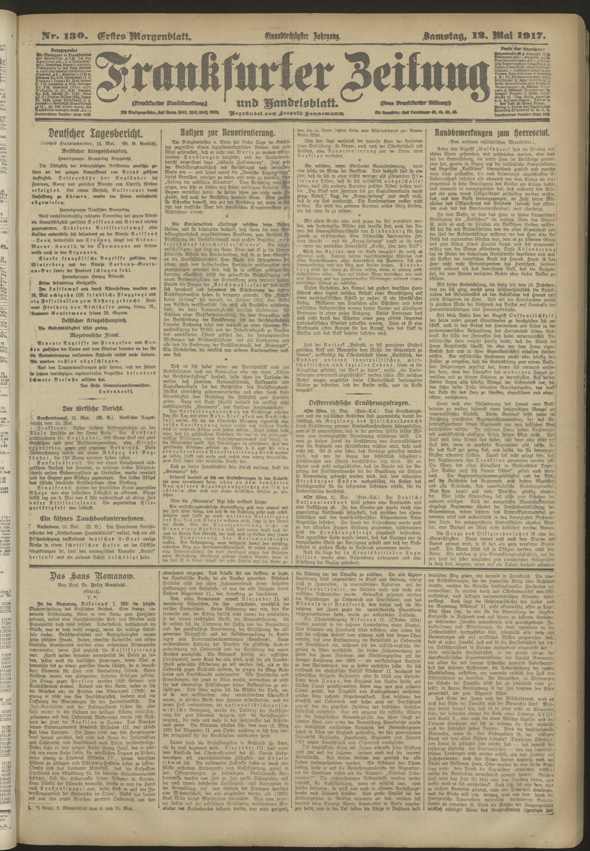 12.05.1917 = Nr. 130. Erstes Morgenblatt