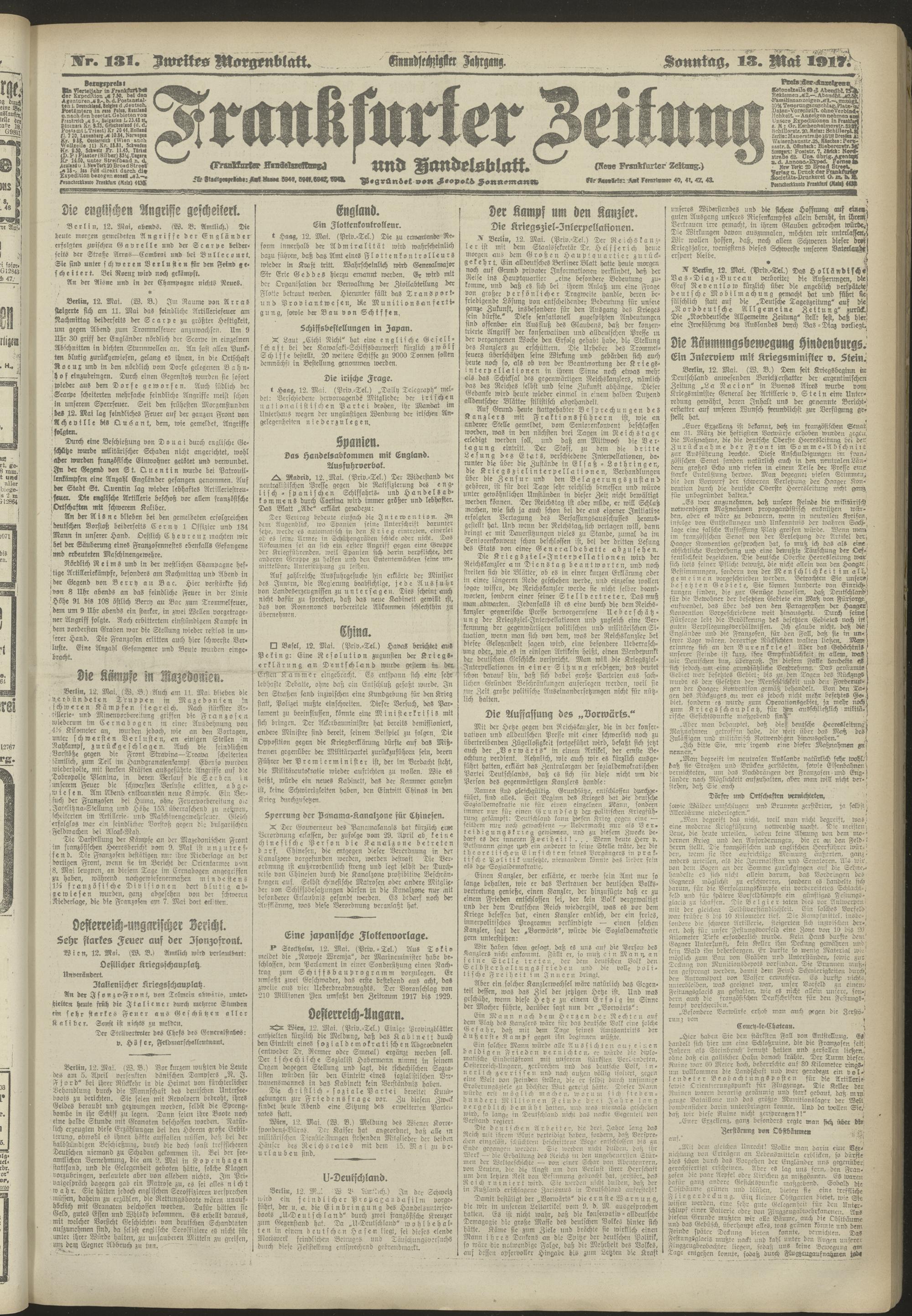 13.05.1917 = Nr. 131. Zweites Morgenblatt
