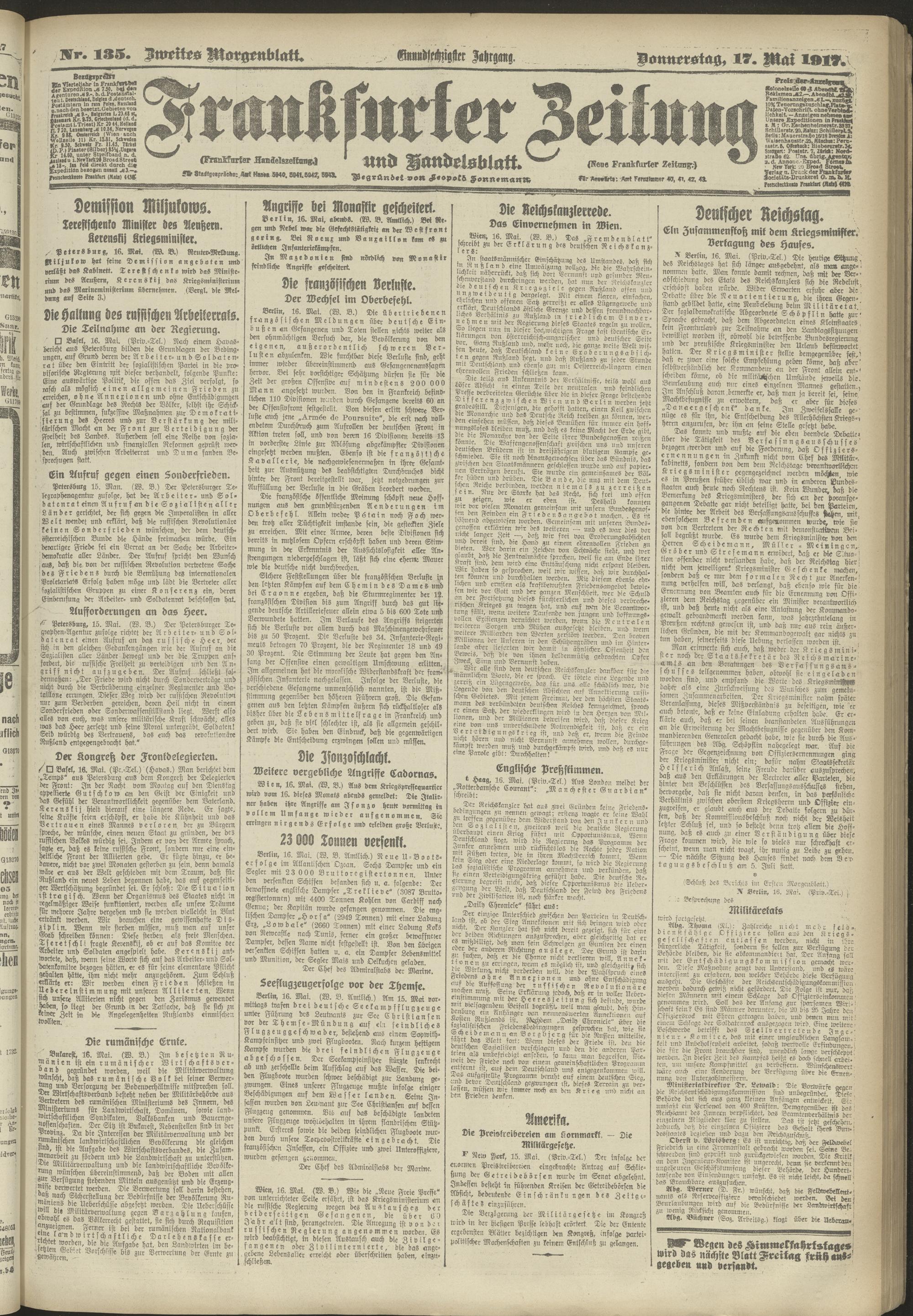 17.05.1917 = Nr. 135. Zweites Morgenblatt
