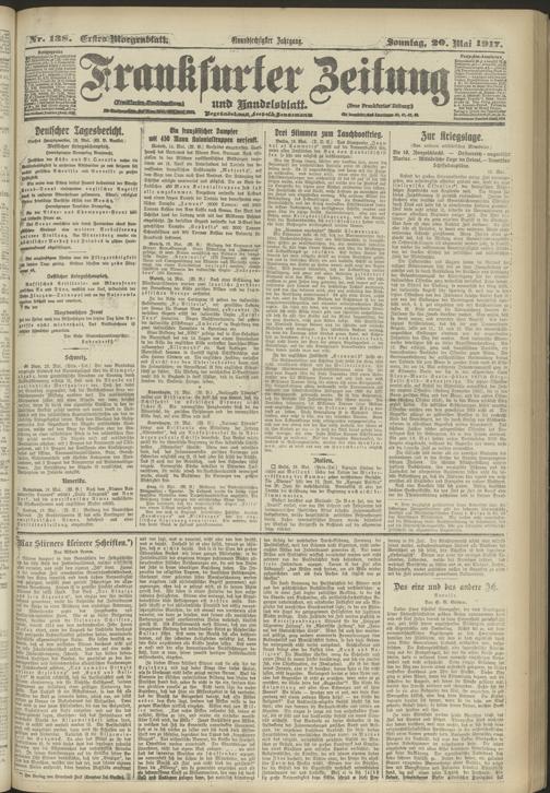 20.05.1917 = Nr. 138. Erstes Morgenblatt