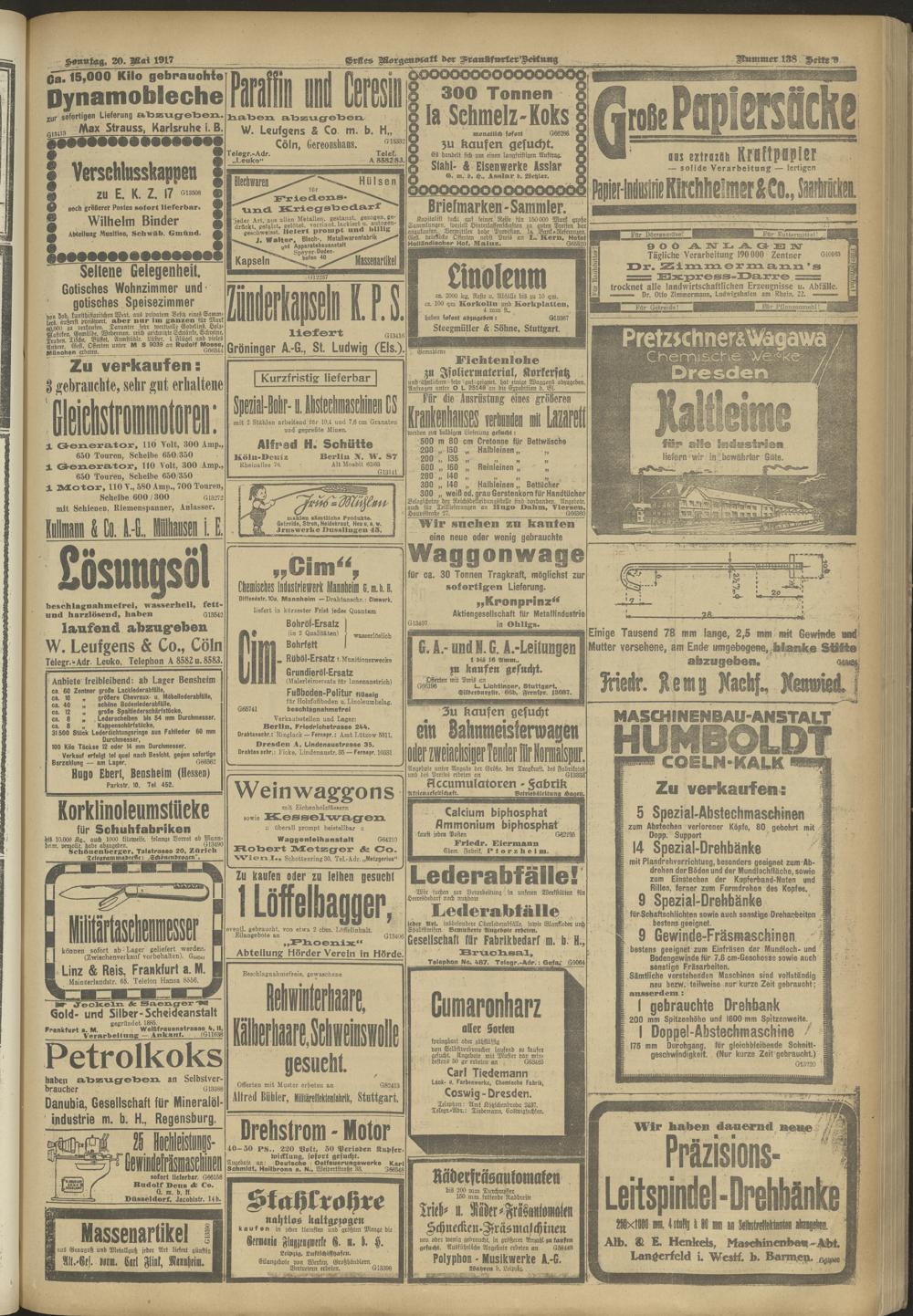 20.05.1917 = Nr. 138. Erstes Morgenblatt