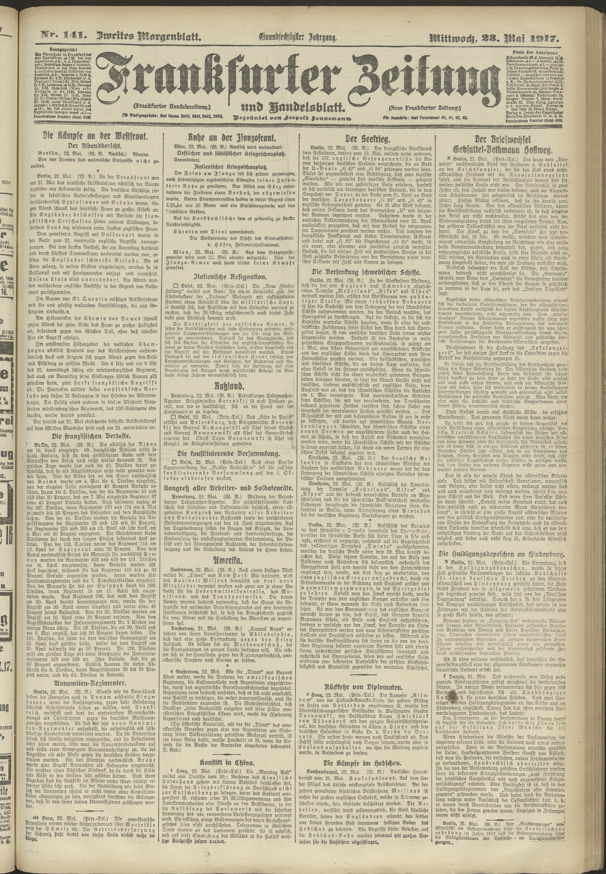 23.05.1917 = Nr. 141. Zweites Morgenblatt