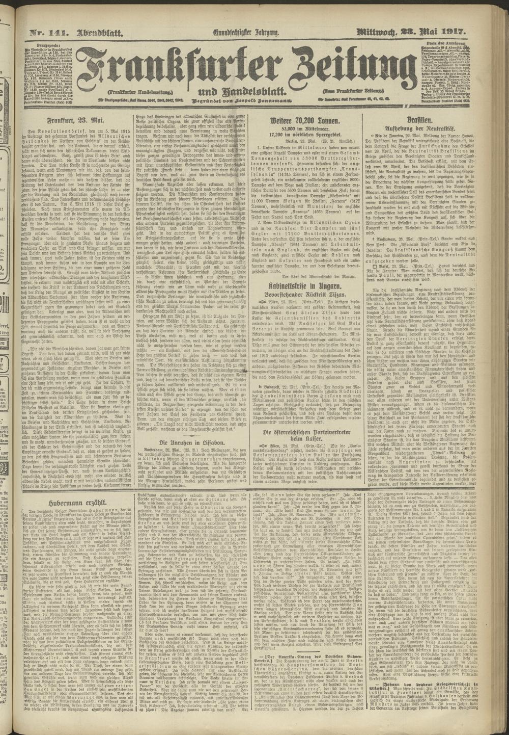 23.05.1917 = Nr. 141. Abendblatt