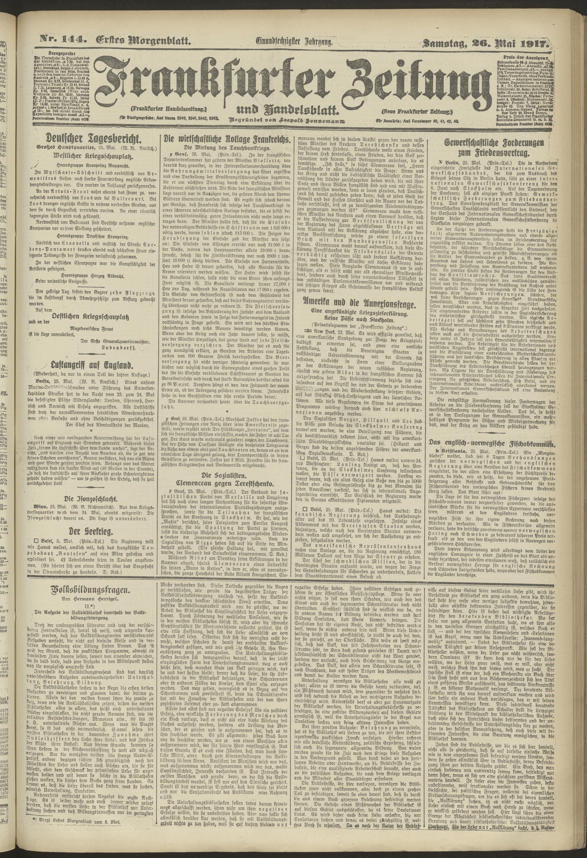 26.05.1917 = Nr. 144. Erstes Morgenblatt