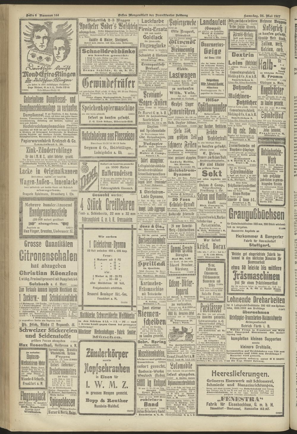 26.05.1917 = Nr. 144. Erstes Morgenblatt
