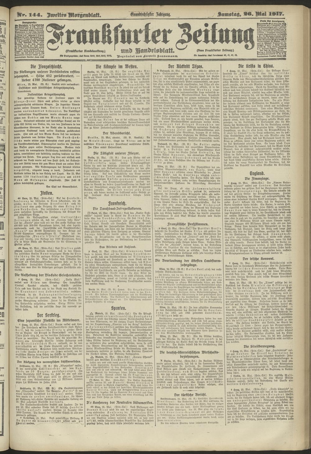 26.05.1917 = Nr. 144. Zweites Morgenblatt