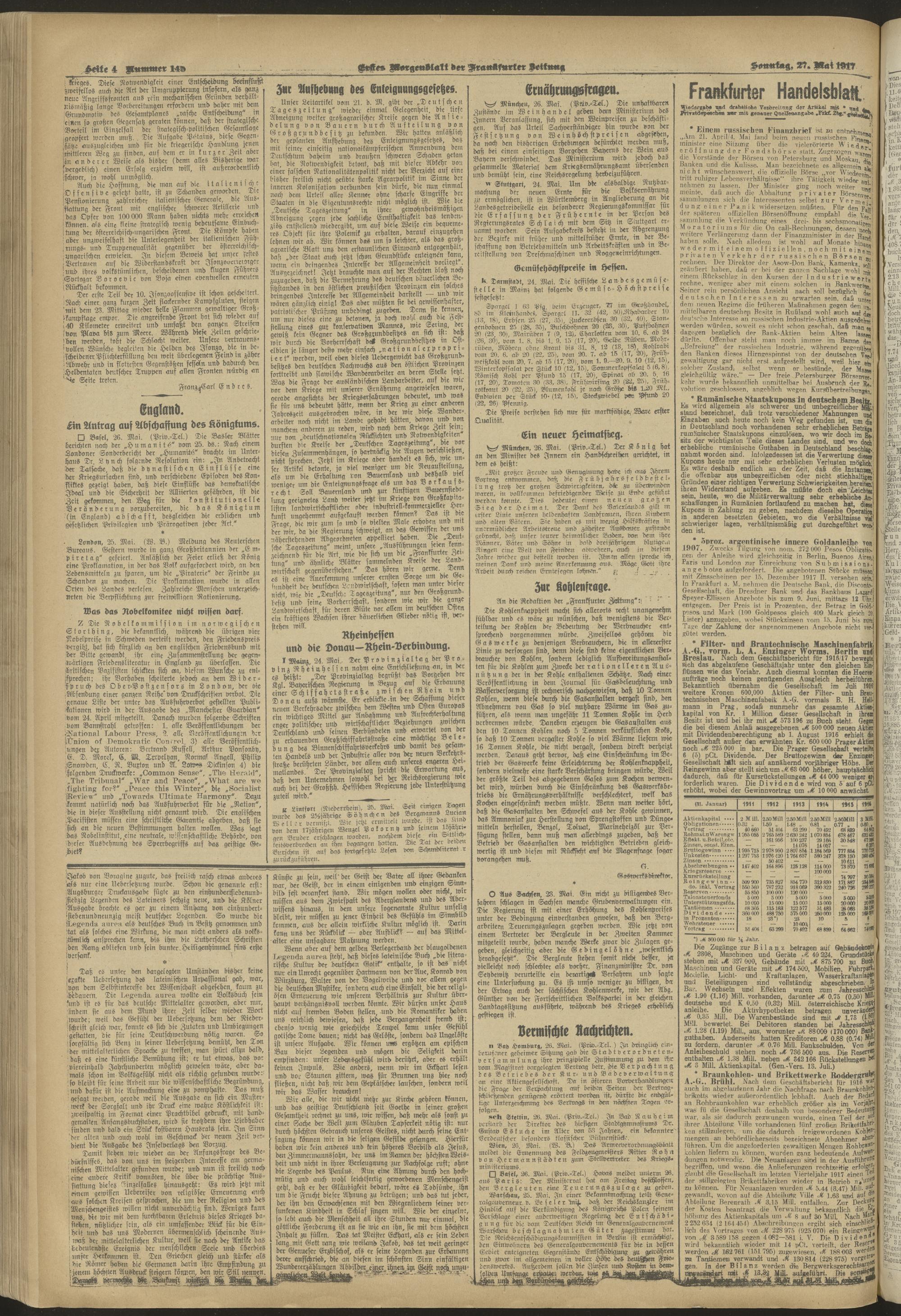27.05.1917 = Nr. 145. Erstes Morgenblatt