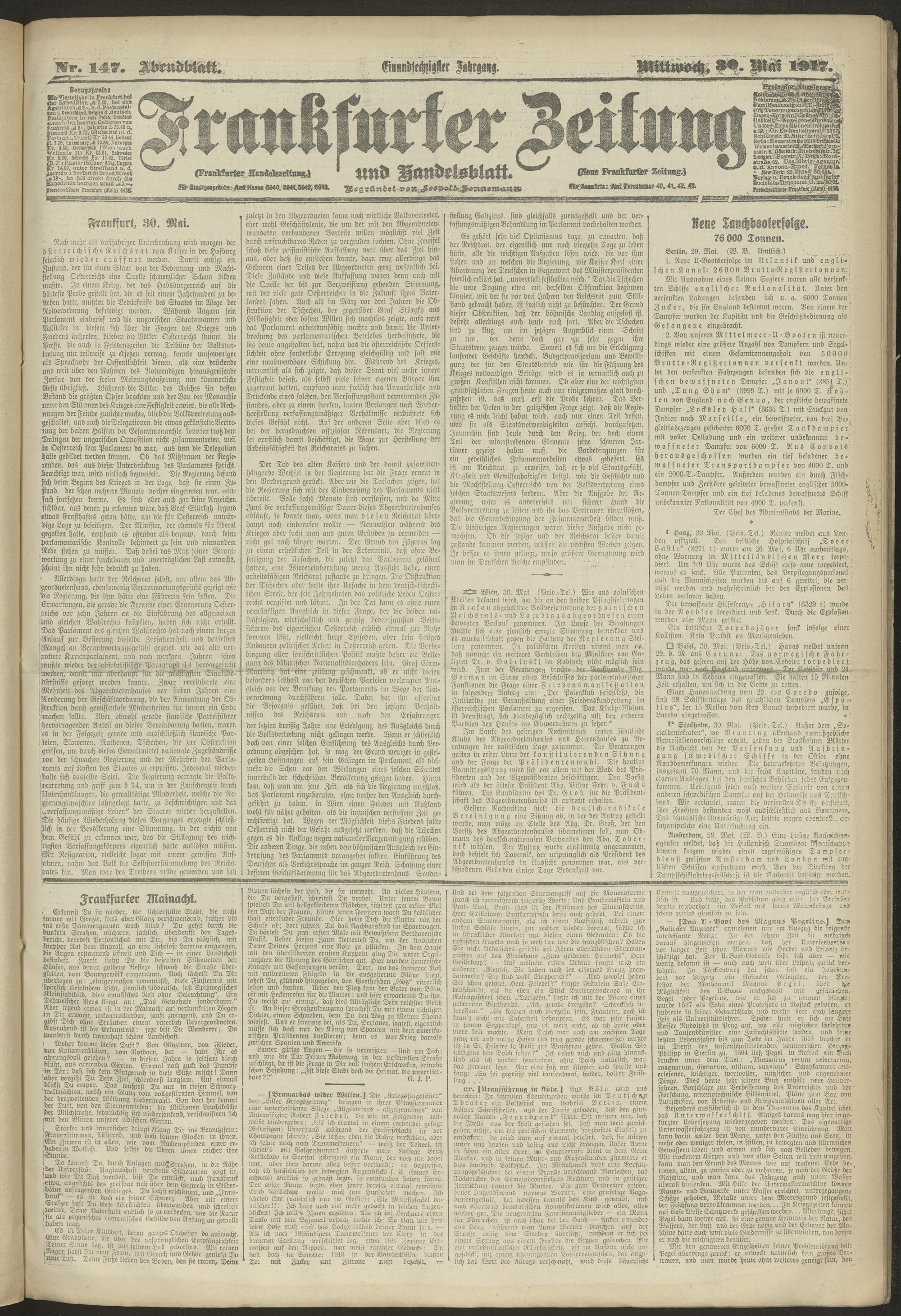 30.05.1917 = Nr. 147. Abendblatt