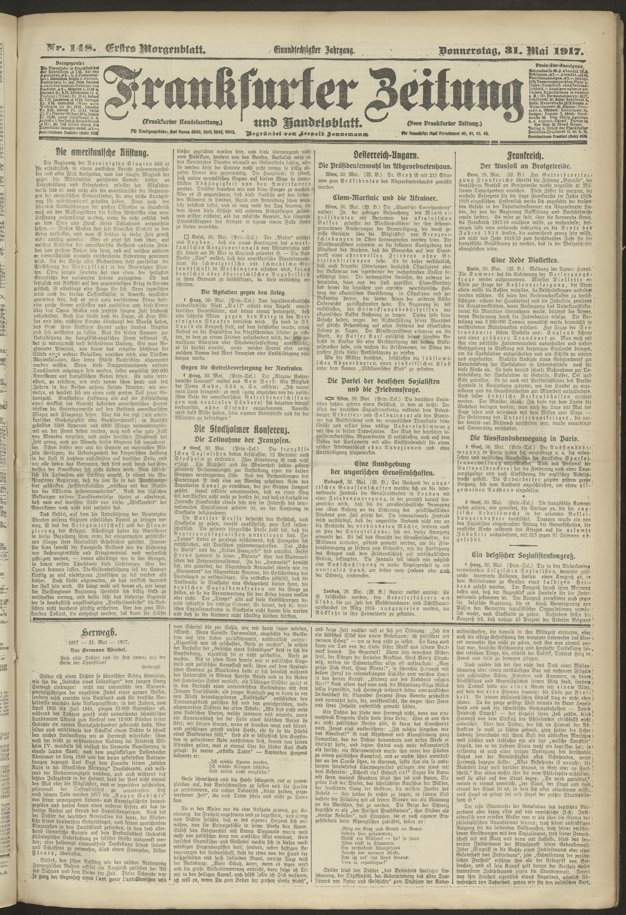 31.05.1917 = Nr. 148. Erstes Morgenblatt