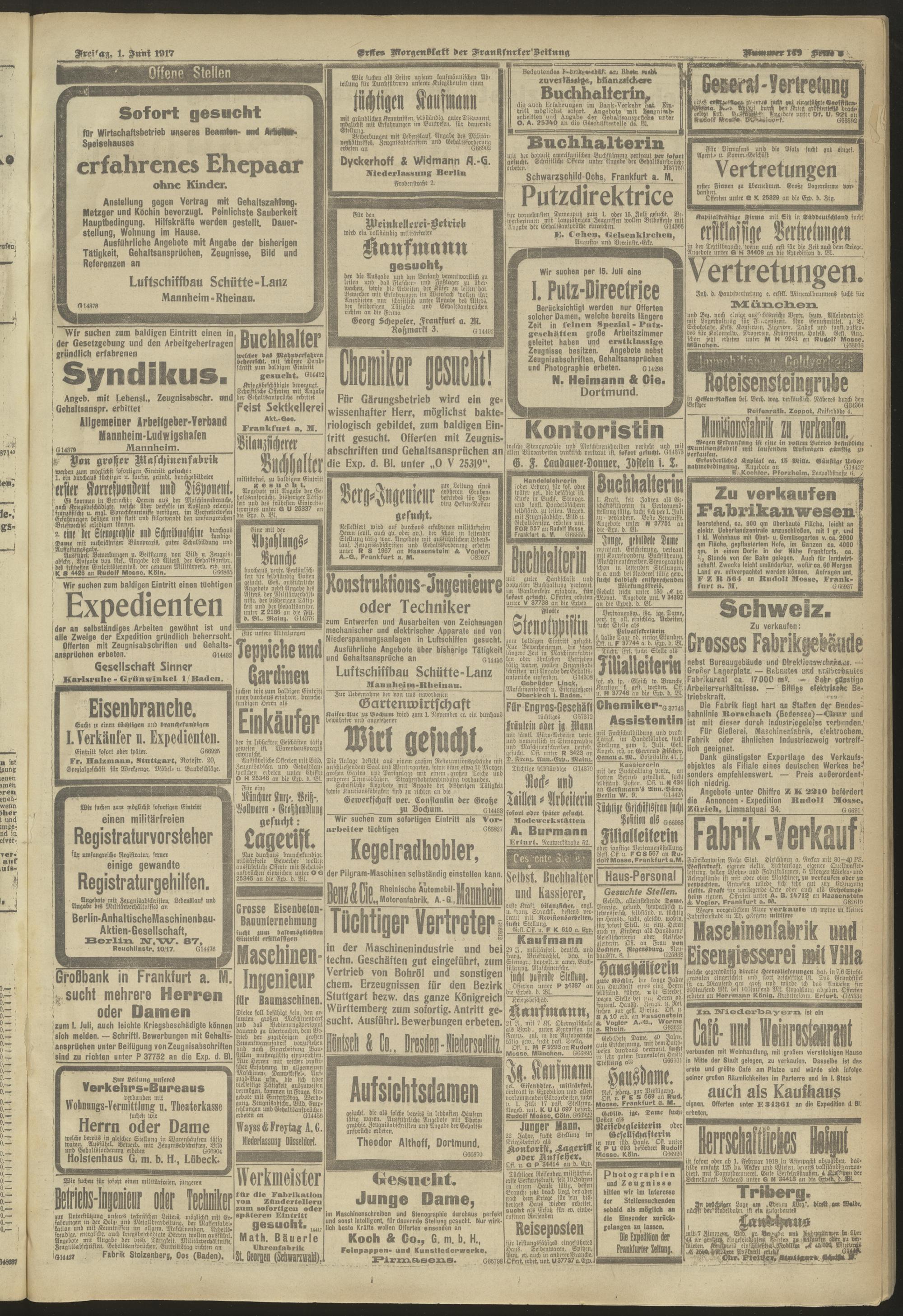 01.06.1917 = Nr. 149. Erstes Morgenblatt