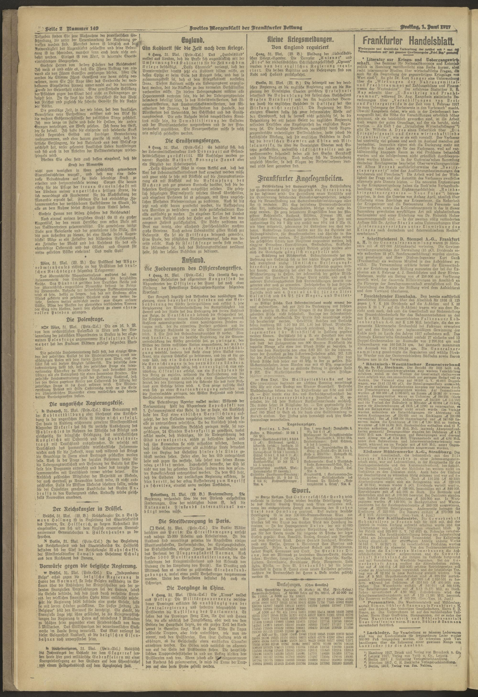 01.06.1917 = Nr. 149. Zweites Morgenblatt