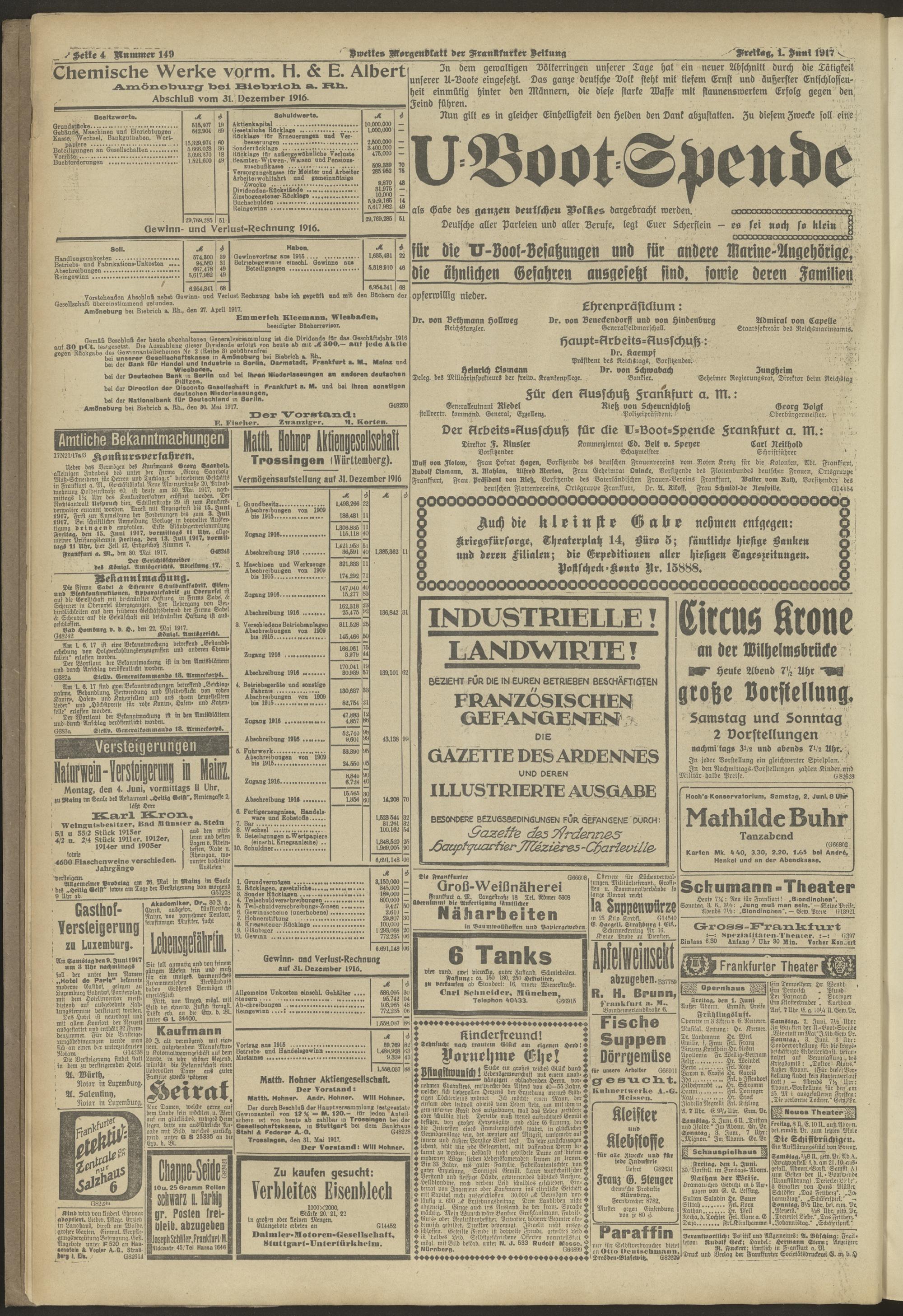 01.06.1917 = Nr. 149. Zweites Morgenblatt