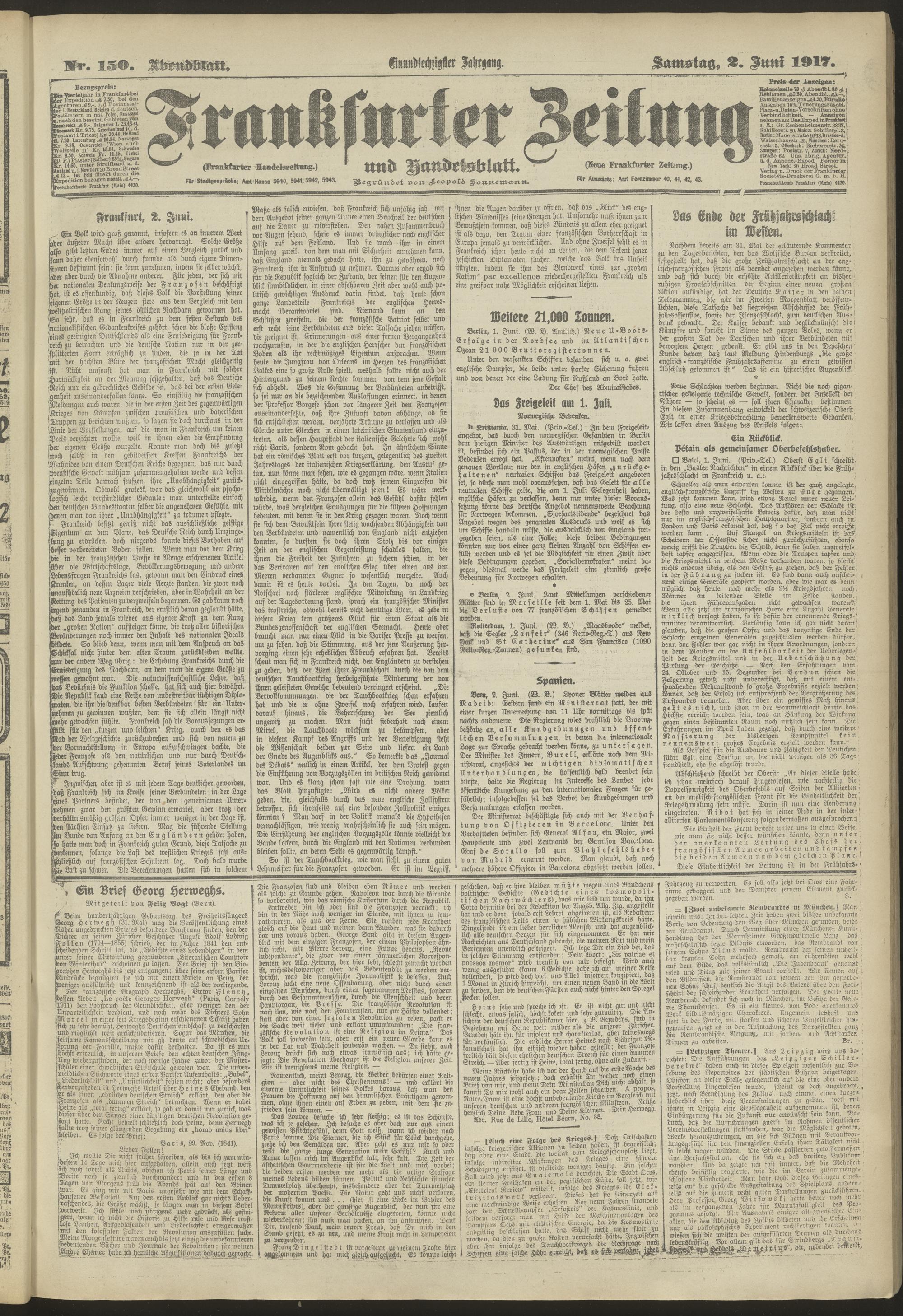 02.06.1917 = Nr. 150. Abendblatt