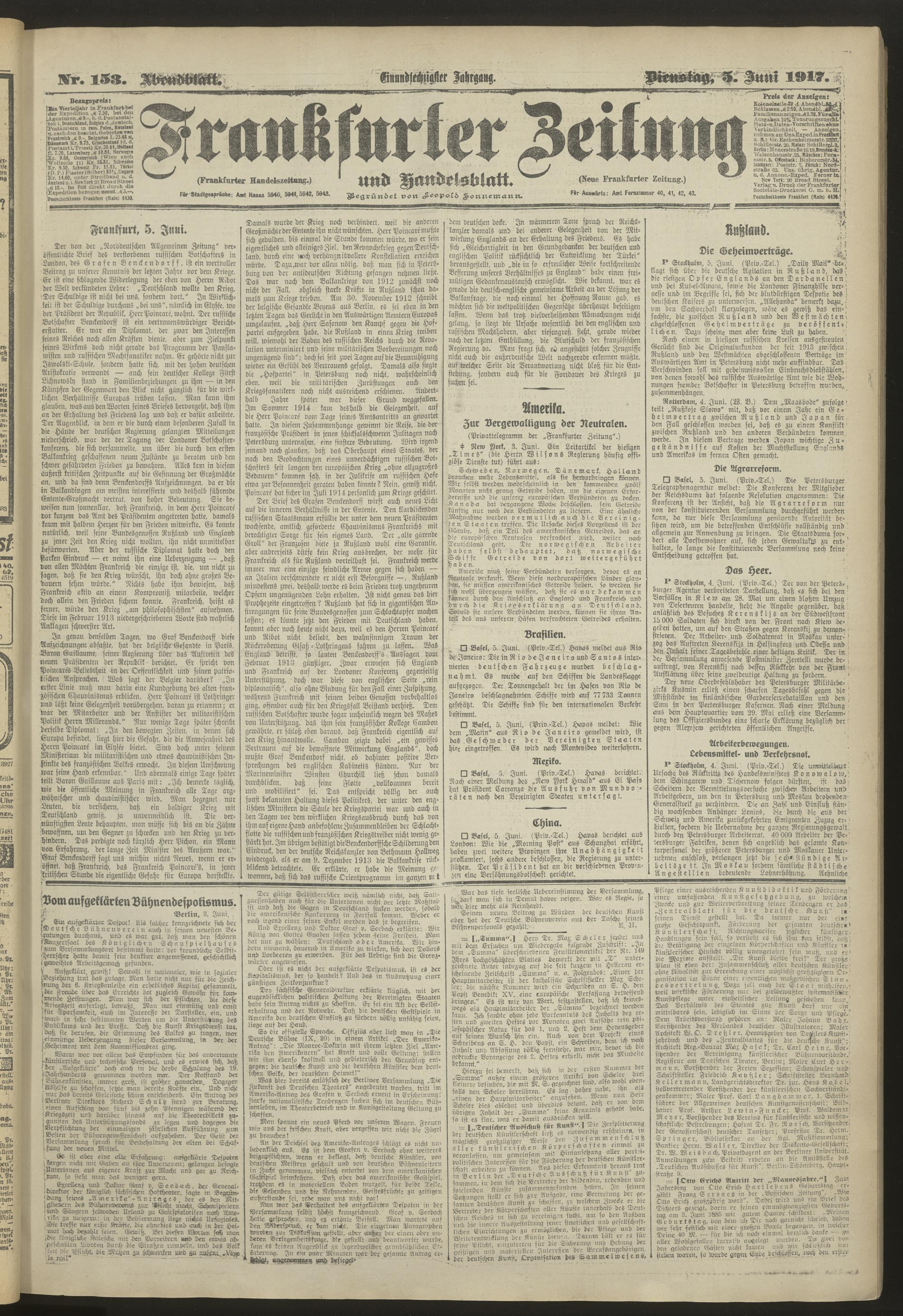 05.06.1917 = Nr. 153. Abendblatt