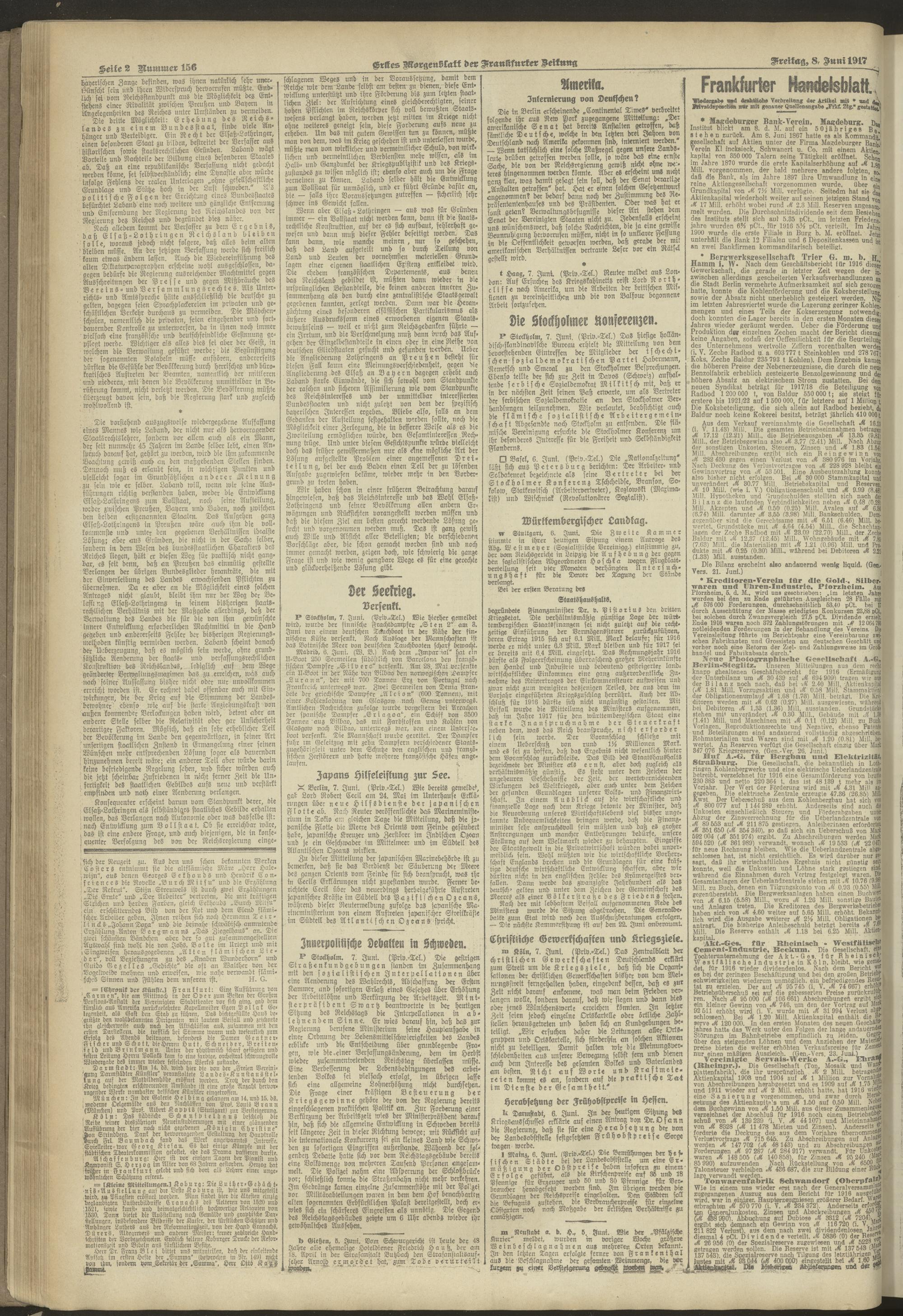 08.06.1917 = Nr. 156. Erstes Morgenblatt