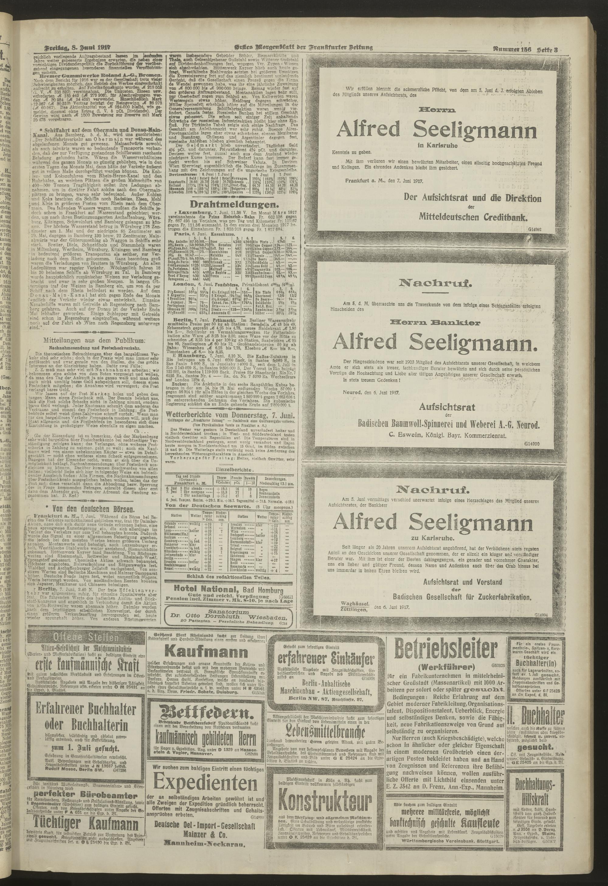 08.06.1917 = Nr. 156. Erstes Morgenblatt