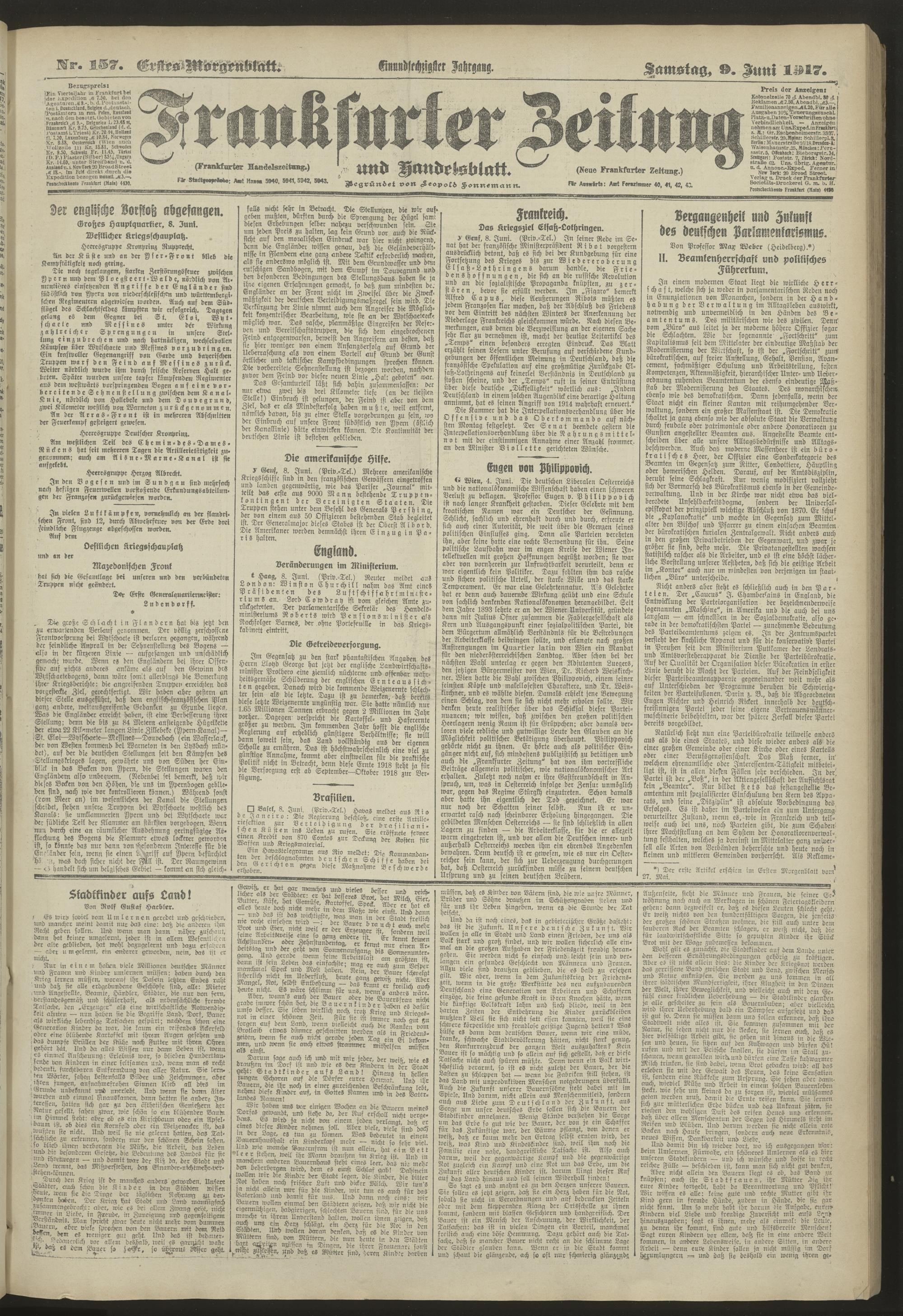 09.06.1917 = Nr. 157. Erstes Morgenblatt