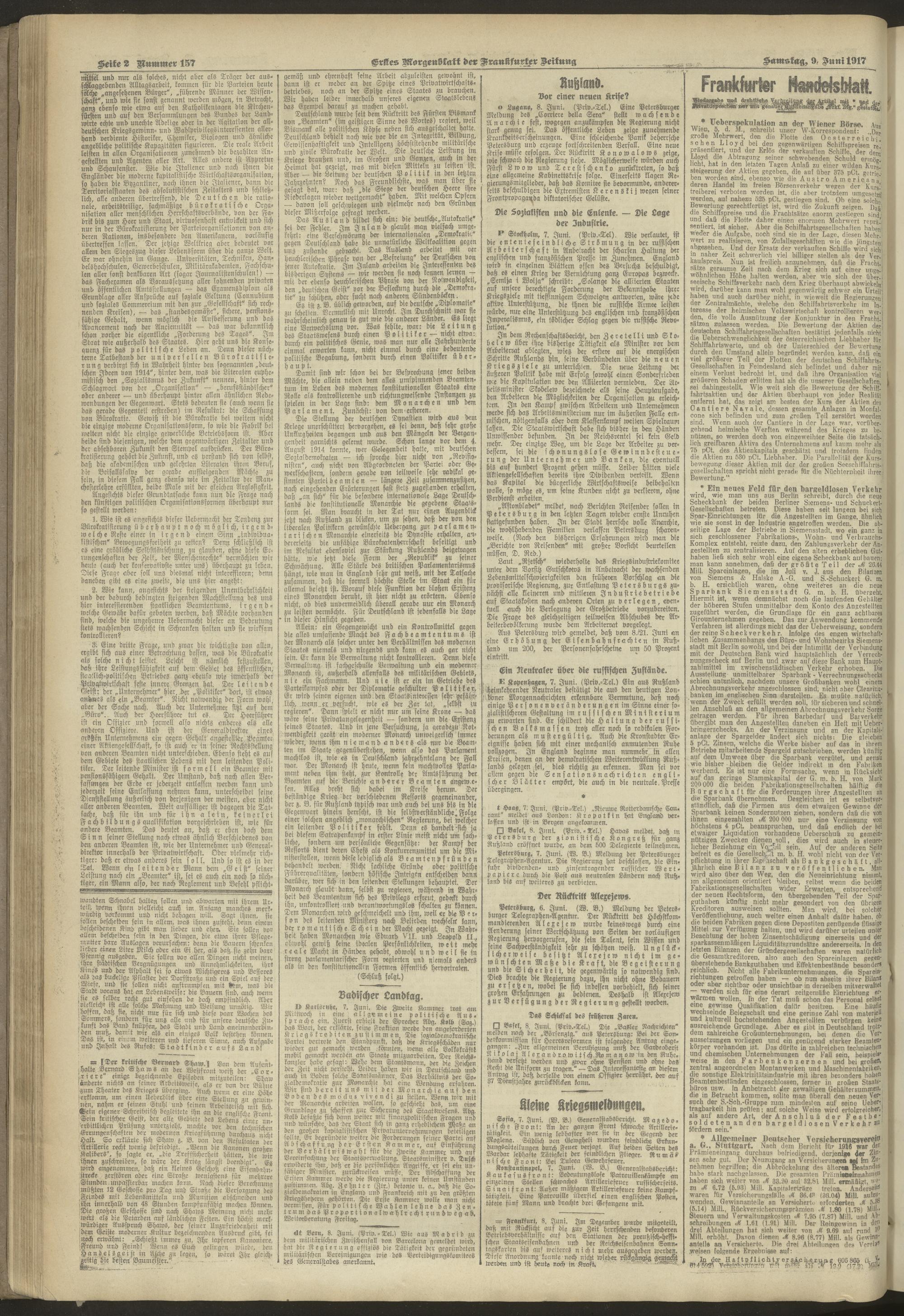 09.06.1917 = Nr. 157. Erstes Morgenblatt