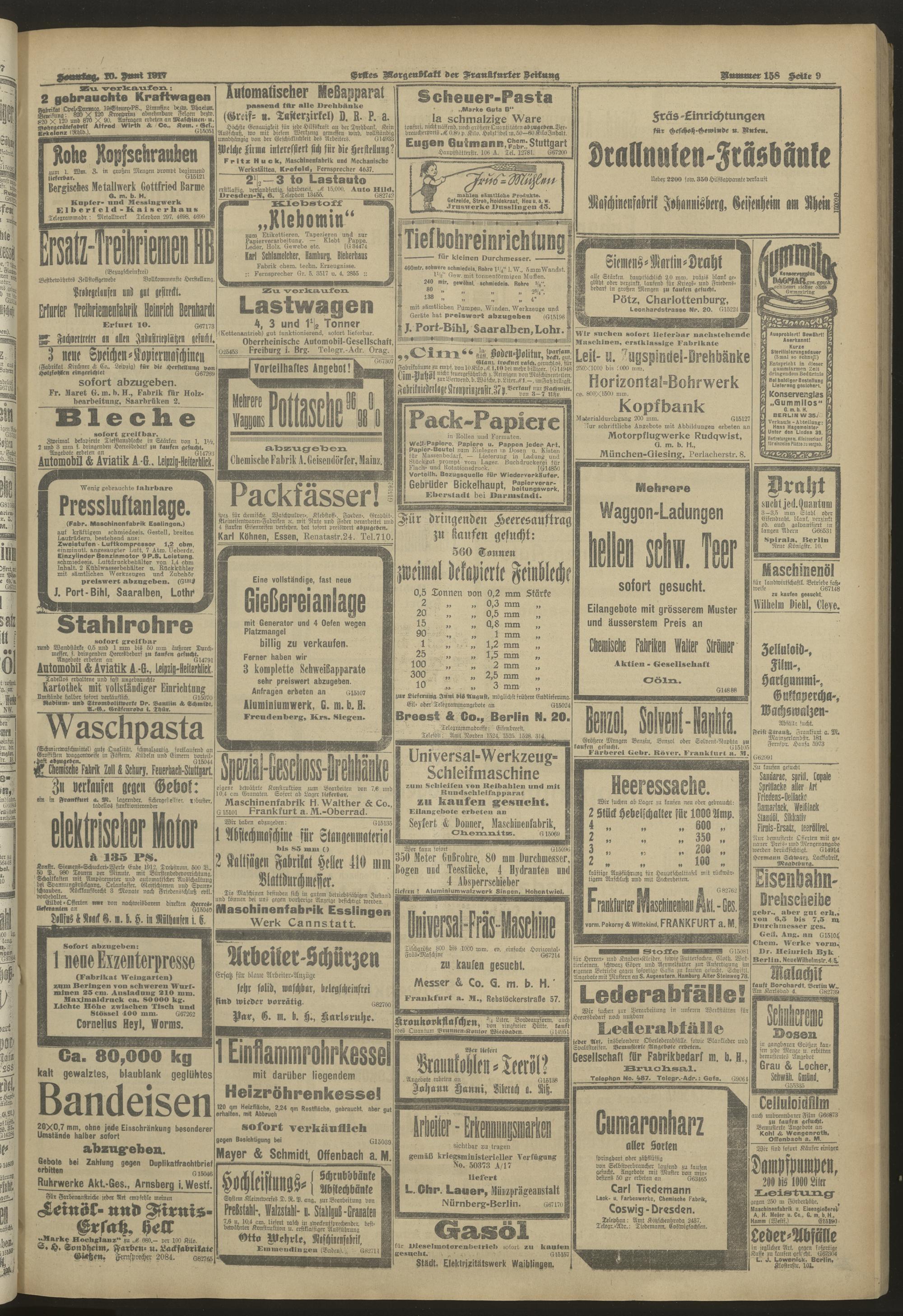 10.06.1917 = Nr. 158. Erstes Morgenblatt