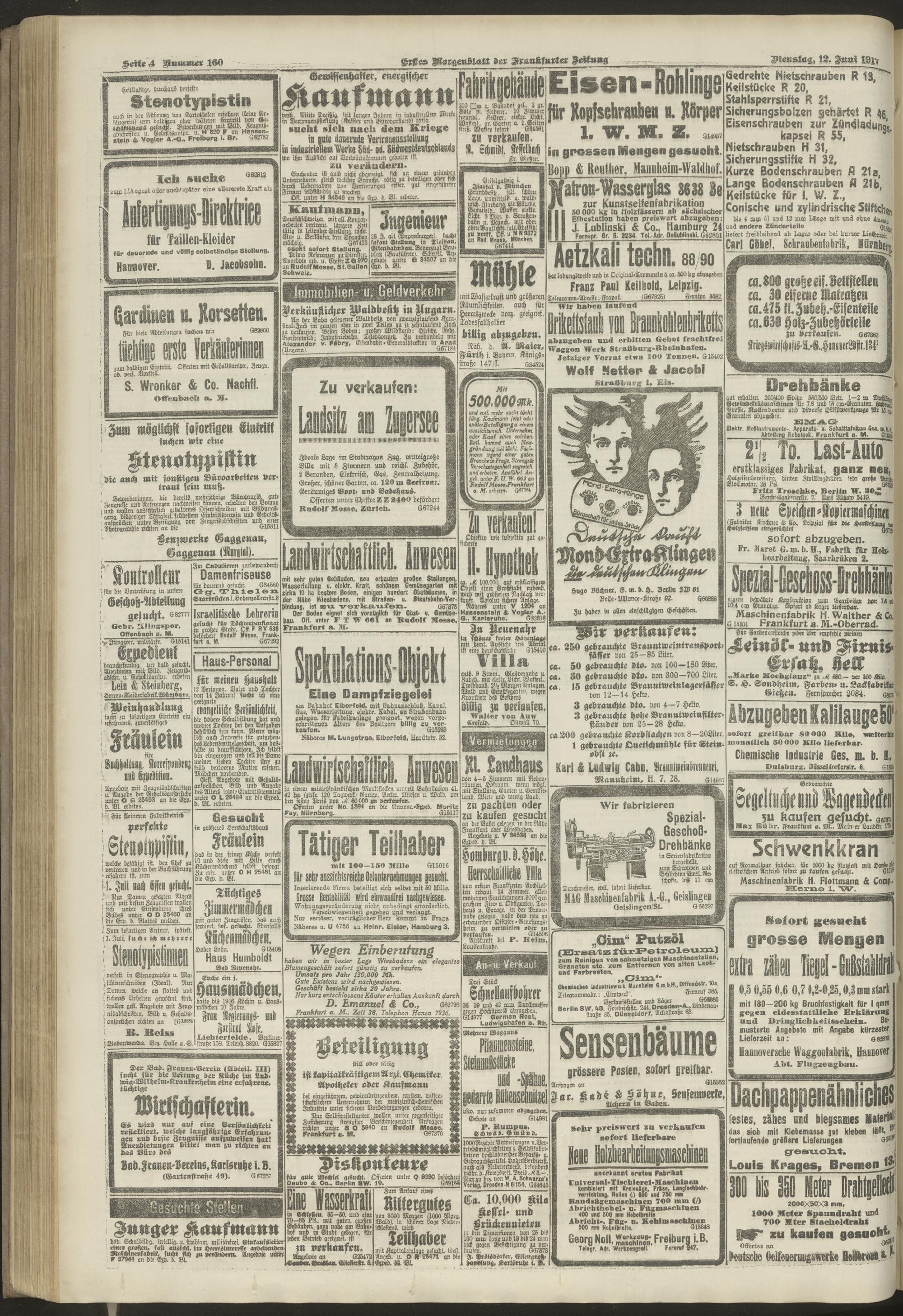 12.06.1917 = Nr. 160. Erstes Morgenblatt