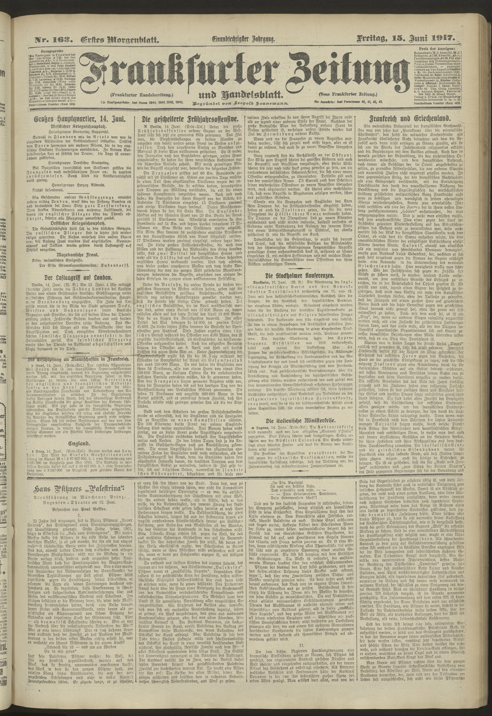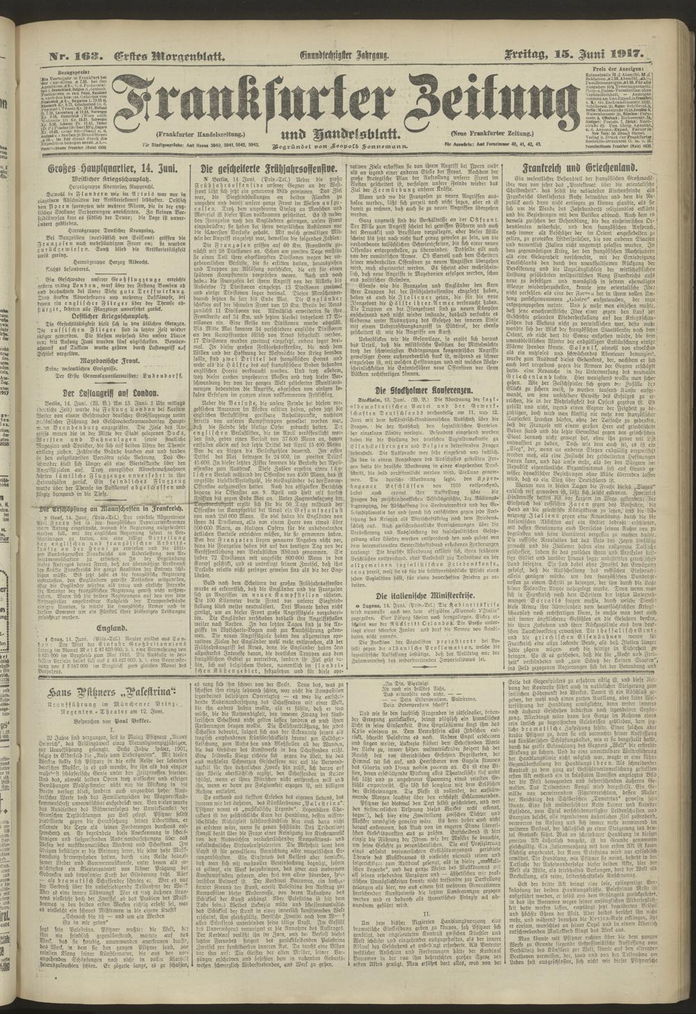 15.06.1917 = Nr. 163. Erstes Morgenblatt