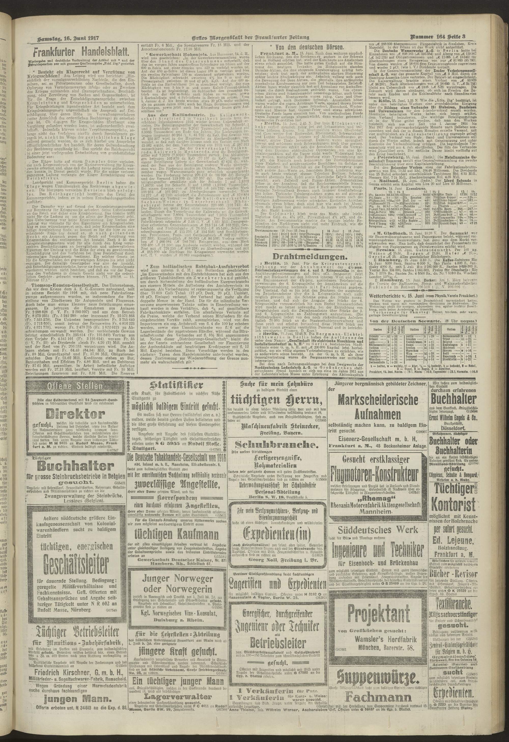 16.06.1917 = Nr. 164. Erstes Morgenblatt