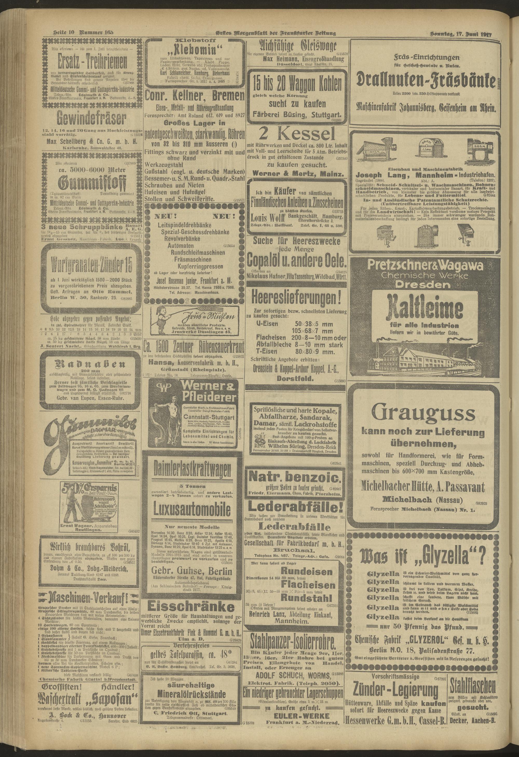 17.06.1917 = Nr. 165. Erstes Morgenblatt