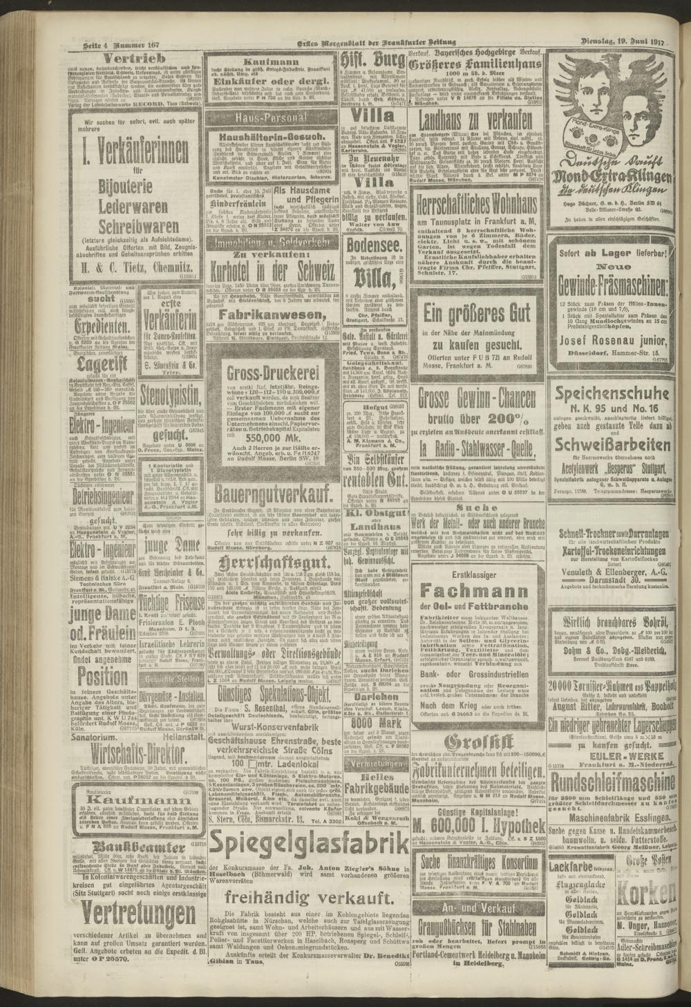 19.06.1917 = Nr. 167. Erstes Morgenblatt