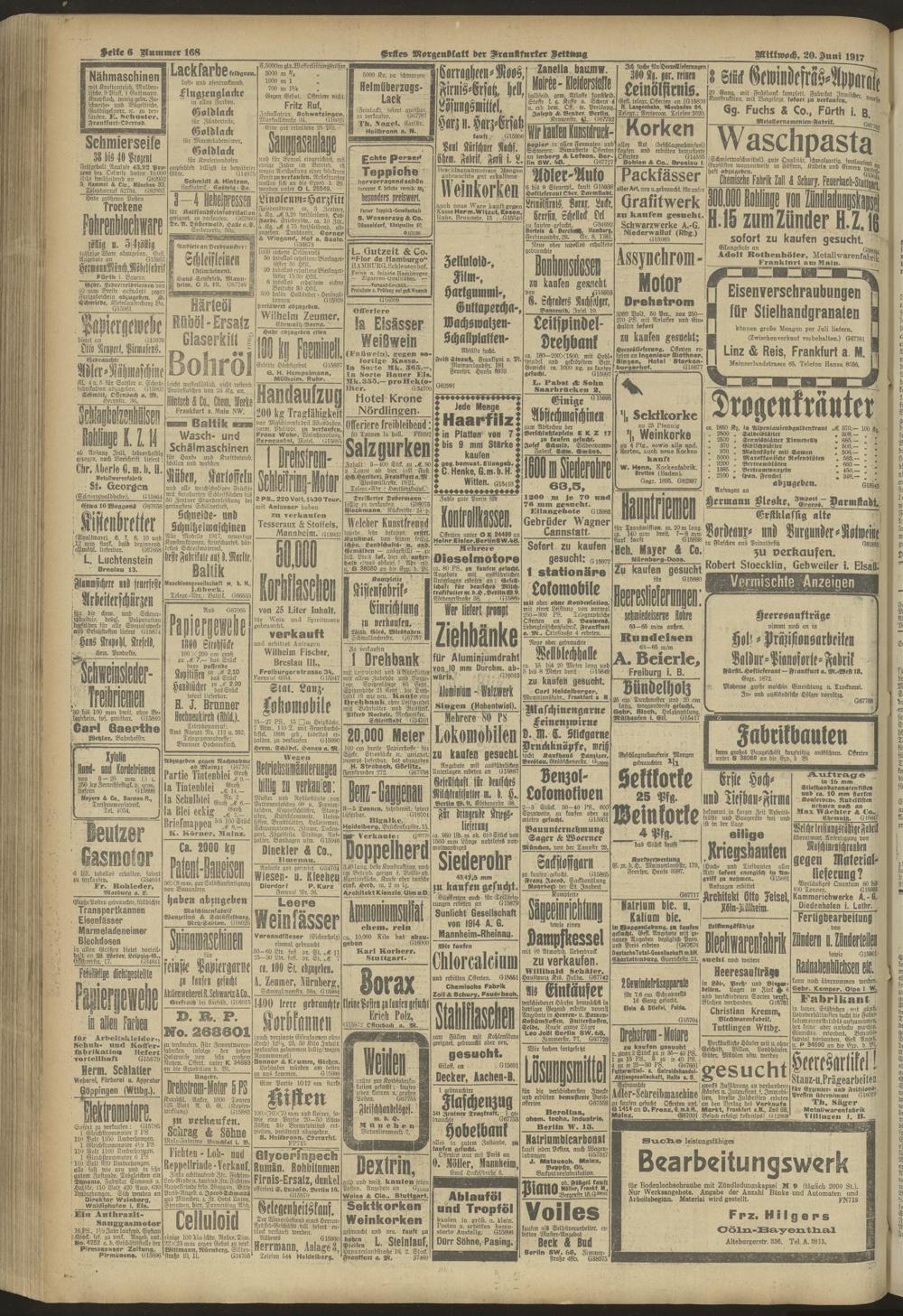 20.06.1917 = Nr. 168. Erstes Morgenblatt