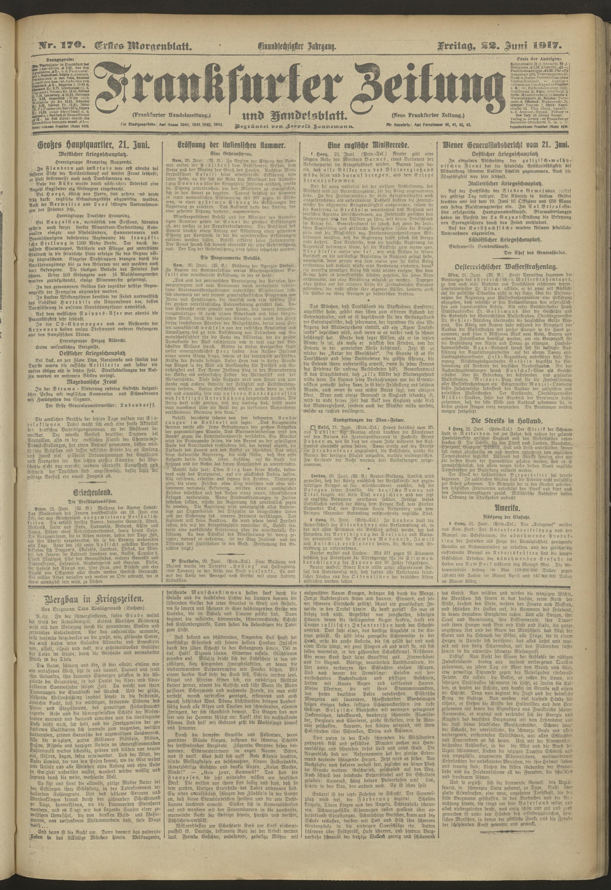 22.06.1917 = Nr. 170. Erstes Morgenblatt