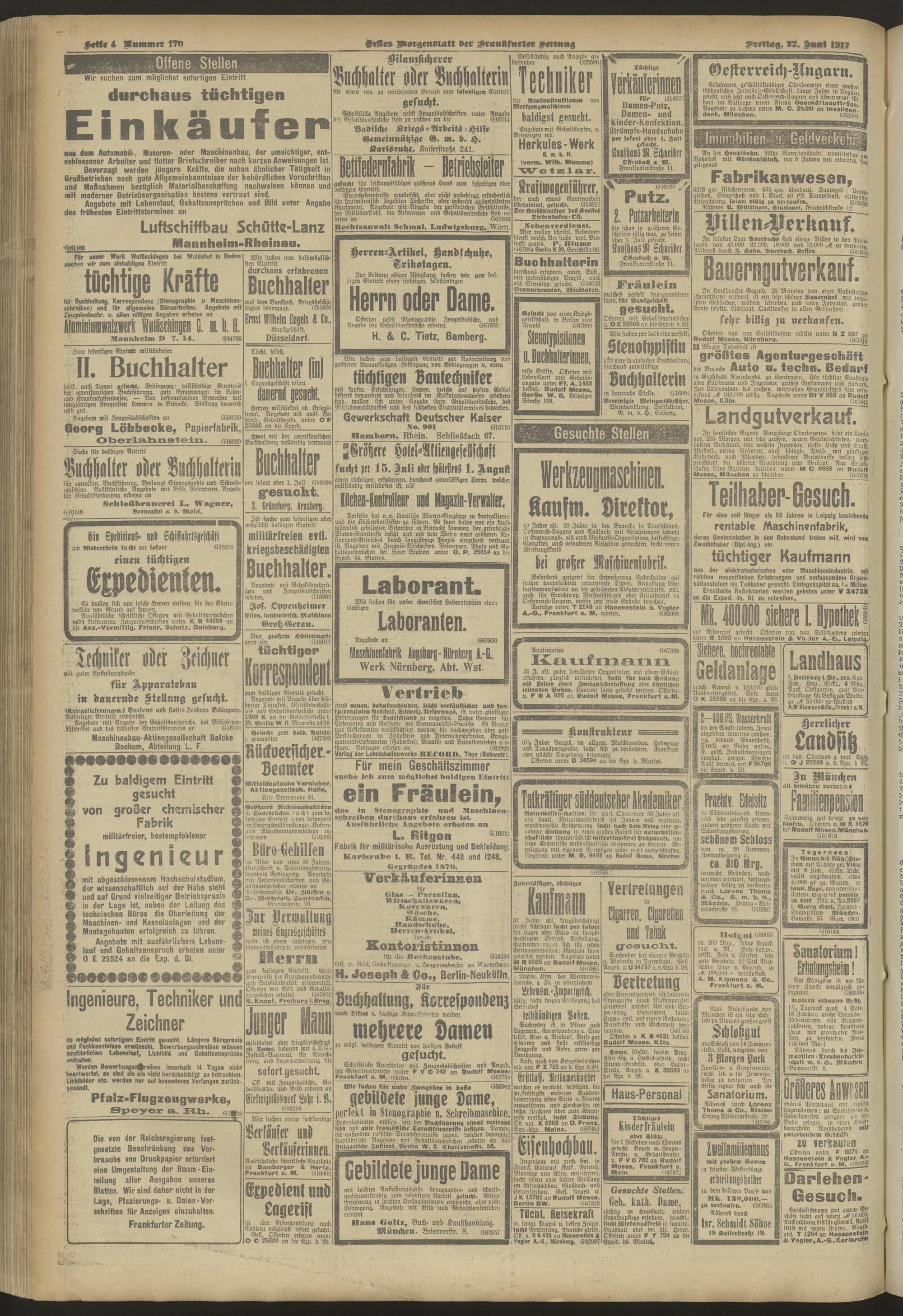22.06.1917 = Nr. 170. Erstes Morgenblatt